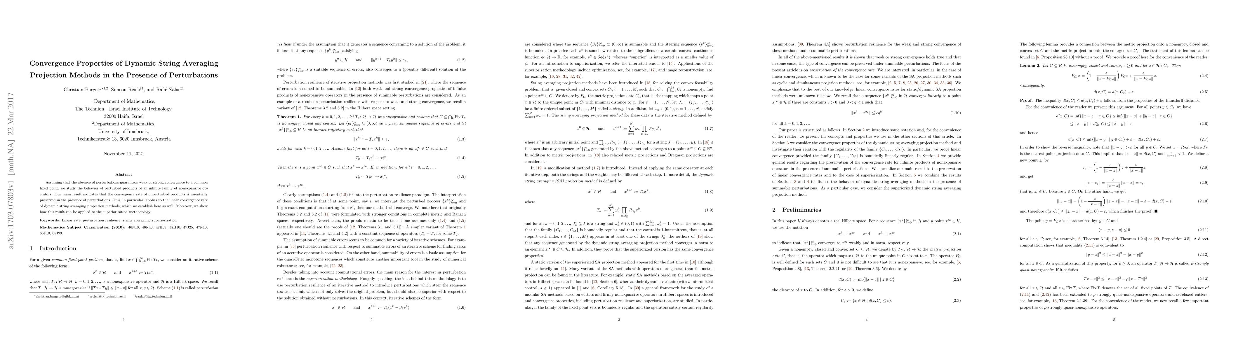 This paper investigates the convergence properties of dynamic string averaging projection methods under perturbations, demonstrating that the convergence rate of unperturbed methods is preserved in perturbed scenarios. The findings also apply to the superiorization methodology.
