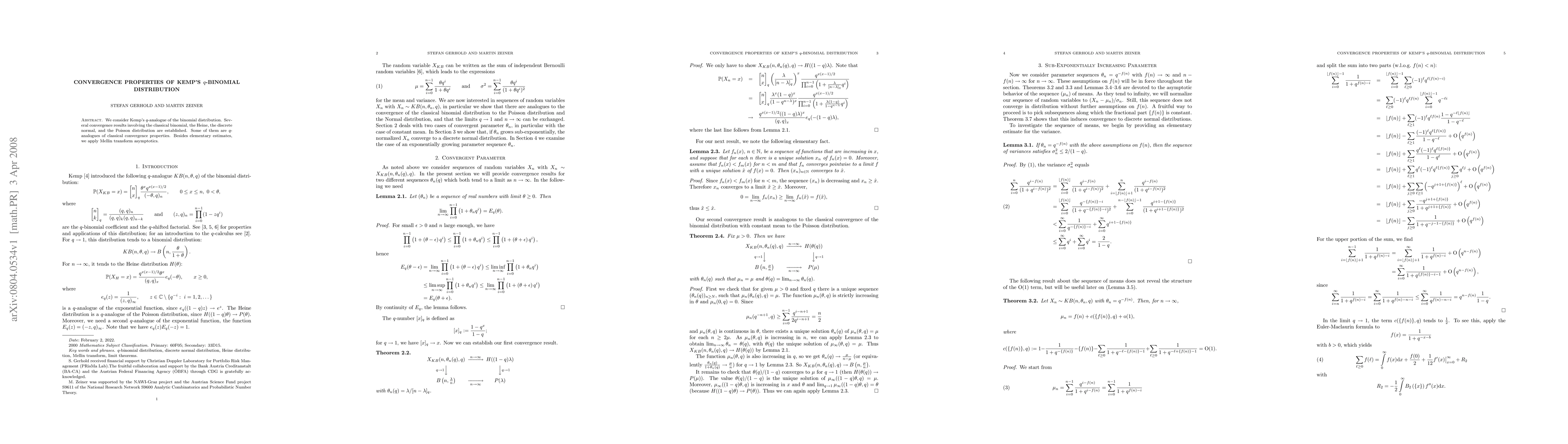 This paper investigates the convergence properties of Kemp's q-analogue of the binomial distribution, establishing connections to classical distributions like the binomial, Heine, discrete normal, and Poisson distributions, and employing Mellin transform asymptotics for analysis.