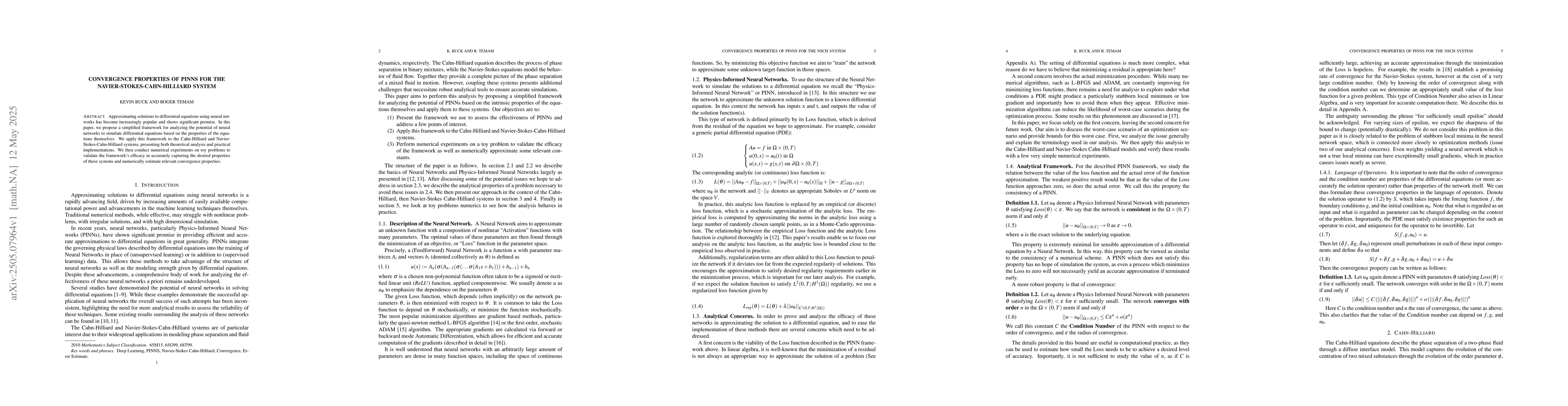 Approximating solutions to differential equations using neural networks has become increasingly popular and shows significant promise. In this paper, we propose a simplified framework for analyzing the potential of neural networks to simulate differential equations based on the properties of the equations themselves. We apply this framework to the Cahn-Hilliard and Navier-Stokes-Cahn-Hilliard systems, presenting both theoretical analysis and practical implementations. We then conduct numerical experiments on toy problems to validate the framework's efficacy in accurately capturing the desired properties of these systems and numerically estimate relevant convergence properties.