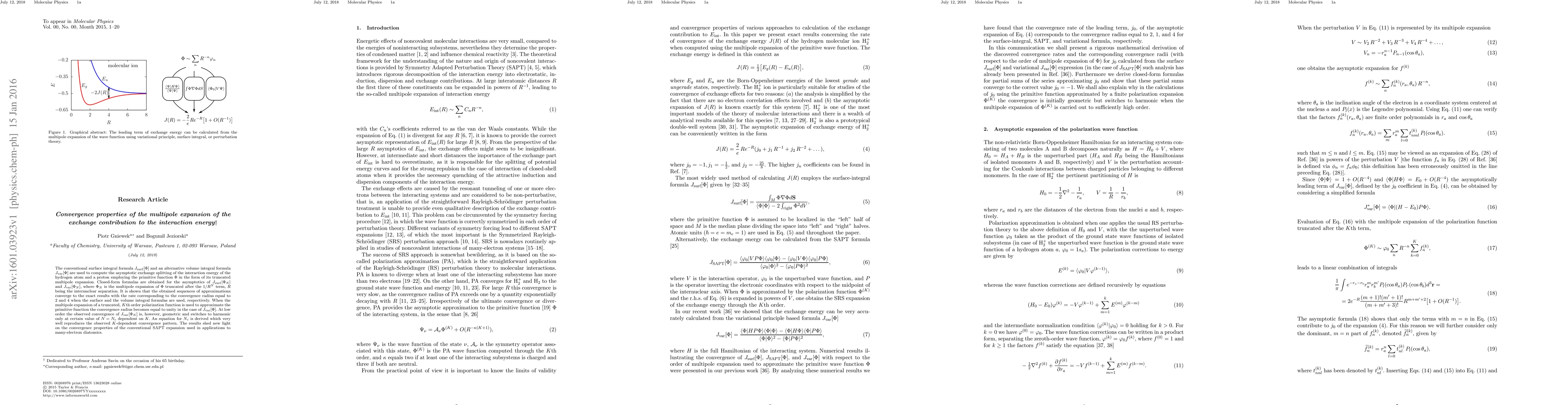 This paper investigates the convergence properties of the multipole expansion for computing the exchange interaction energy in hydrogen atom-proton interactions. It compares two methods, finding that the surface integral formula converges at a rate of 2, while the volume integral formula converges at a rate of 4, with a derived equation explaining the transition from geometric to harmonic convergence at a specific order.