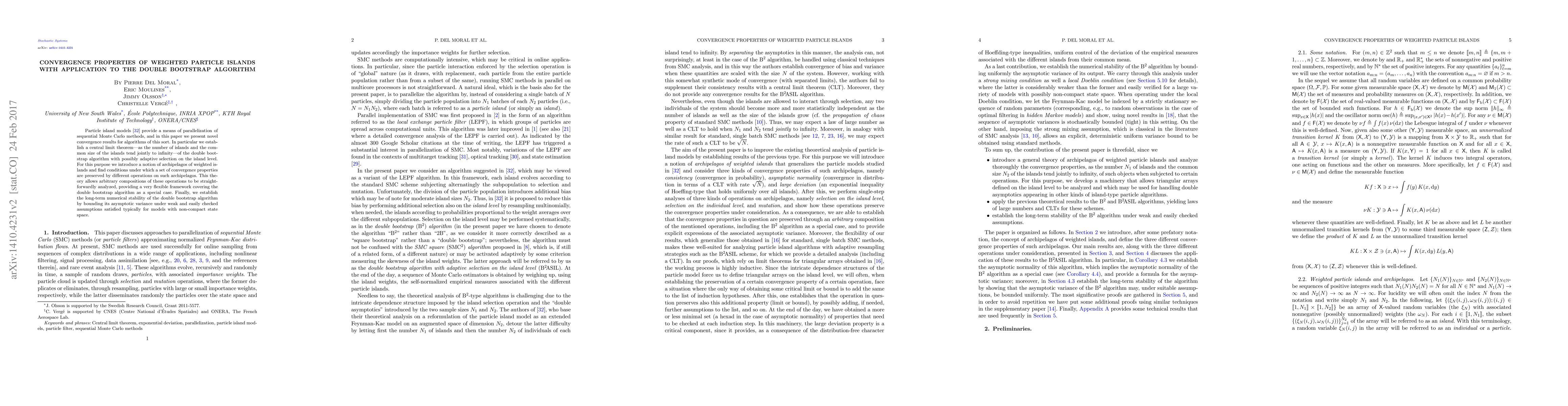 Particle island models (Verg\'e et al., 2013) provide a means of parallelization of sequential Monte Carlo methods, and in this paper we present novel convergence results for algorithms of this sort. In particular we establish a central limit theorem - as the number of islands and the common size of the islands tend jointly to infinity - of the double bootstrap algorithm with possibly adaptive selection on the island level. For this purpose we introduce a notion of archipelagos of weighted islands and find conditions under which a set of convergence properties are preserved by different operations on such archipelagos. This theory allows arbitrary compositions of these operations to be straightforwardly analyzed, providing a very flexible framework covering the double bootstrap algorithm as a special case. Finally, we establish the long-term numerical stability of the double bootstrap algorithm by bounding its asymptotic variance under weak and easily checked assumptions satisfied for a wide range of models with possibly non-compact state space.