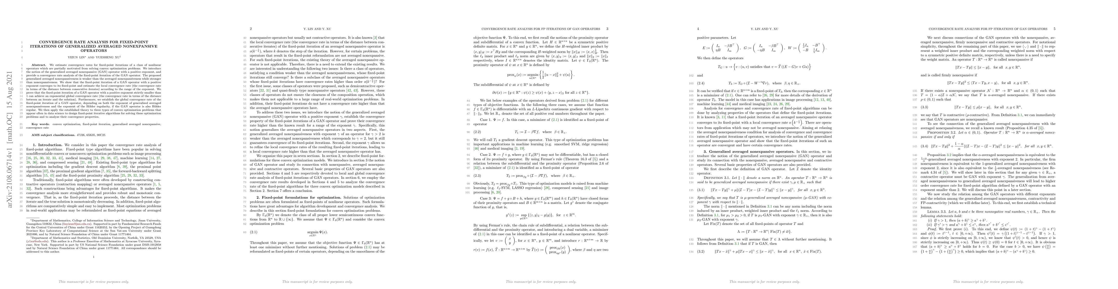 We estimate convergence rates for fixed-point iterations of a class of nonlinear operators which are partially motivated from solving convex optimization problems. We introduce the notion of the generalized averaged nonexpansive (GAN) operator with a positive exponent, and provide a convergence rate analysis of the fixed-point iteration of the GAN operator. The proposed generalized averaged nonexpansiveness is weaker than the averaged nonexpansiveness while stronger than nonexpansiveness. We show that the fixed-point iteration of a GAN operator with a positive exponent converges to its fixed-point and estimate the local convergence rate (the convergence rate in terms of the distance between consecutive iterates) according to the range of the exponent. We prove that the fixed-point iteration of a GAN operator with a positive exponent strictly smaller than 1 can achieve an exponential global convergence rate (the convergence rate in terms of the distance between an iterate and the solution). Furthermore, we establish the global convergence rate of the fixed-point iteration of a GAN operator, depending on both the exponent of generalized averaged nonexpansiveness and the exponent of the H$\ddot{\text{o}}$lder regularity, if the GAN operator is also H$\ddot{\text{o}}$lder regular. We then apply the established theory to three types of convex optimization problems that appear often in data science to design fixed-point iterative algorithms for solving these optimization problems and to analyze their convergence properties.