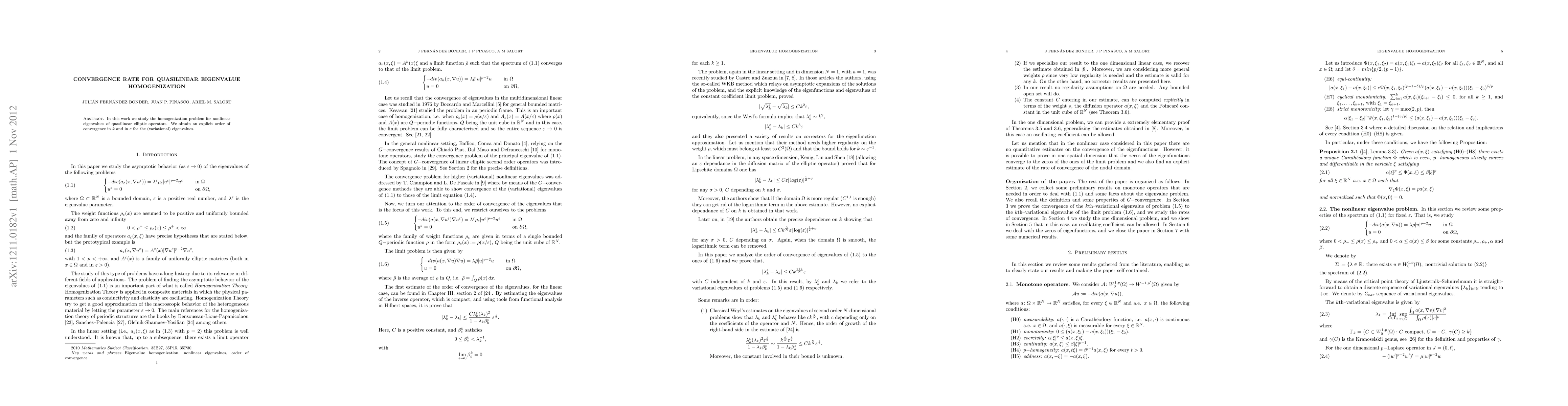 In this work we study the homogenization problem for nonlinear eigenvalues of quasilinear elliptic operators. We obtain an explicit order of convergence in $k$ and in $\varepsilon$ for the (variational) eigenvalues.