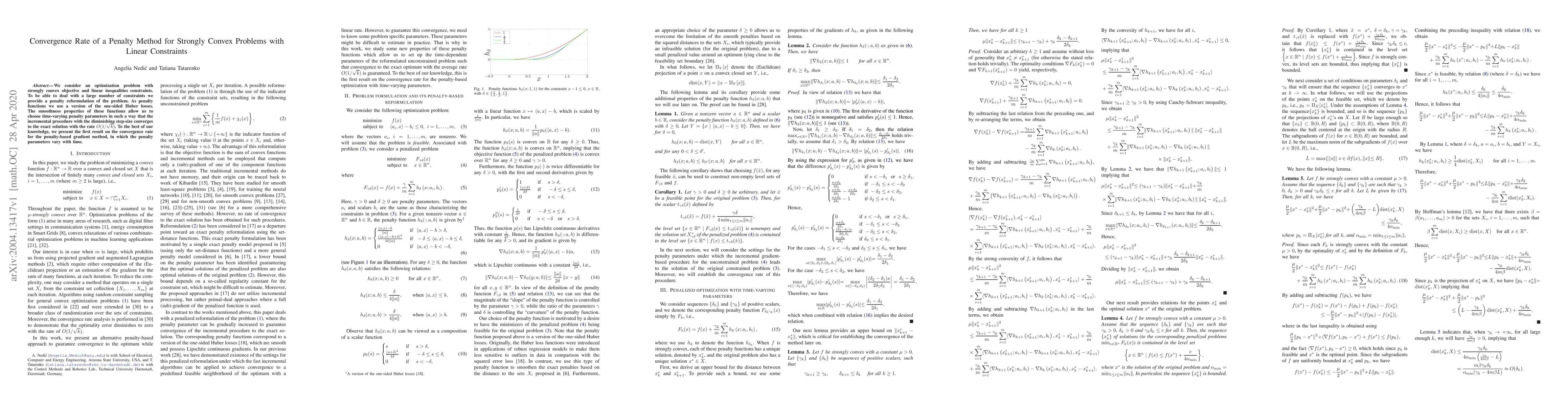 This paper proposes a penalty method for solving strongly convex optimization problems with linear constraints, using one-sided Huber losses. It demonstrates that the incremental procedure with diminishing step-size converges to the exact solution at a rate of $O(1/{\sqrt k})$, presenting the first convergence rate result for a time-varying penalty parameter gradient method.