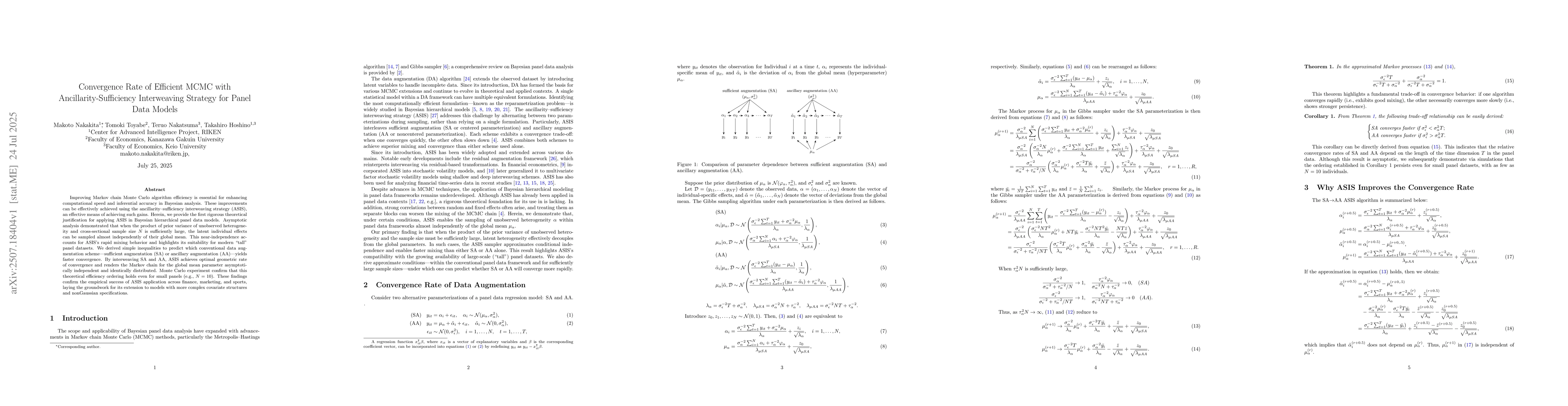 Improving Markov chain Monte Carlo algorithm efficiency is essential for enhancing computational speed and inferential accuracy in Bayesian analysis. These improvements can be effectively achieved using the ancillarity-sufficiency interweaving strategy (ASIS), an effective means of achieving such gains. Herein, we provide the first rigorous theoretical justification for applying ASIS in Bayesian hierarchical panel data models. Asymptotic analysis demonstrated that when the product of prior variance of unobserved heterogeneity and cross-sectional sample size N is sufficiently large, the latent individual effects can be sampled almost independently of their global mean. This near-independence accounts for ASIS's rapid mixing behavior and highlights its suitability for modern "tall" panel datasets. We derived simple inequalities to predict which conventional data augmentation scheme-sufficient augmentation (SA) or ancillary augmentation (AA)-yields faster convergence. By interweaving SA and AA, ASIS achieves optimal geometric rate of convergence and renders the Markov chain for the global mean parameter asymptotically independent and identically distributed. Monte Carlo experiment confirm that this theoretical efficiency ordering holds even for small panels (e.g., N=10). These findings confirm the empirical success of ASIS application across finance, marketing, and sports, laying the groundwork for its extension to models with more complex covariate structures and nonGaussian specifications.