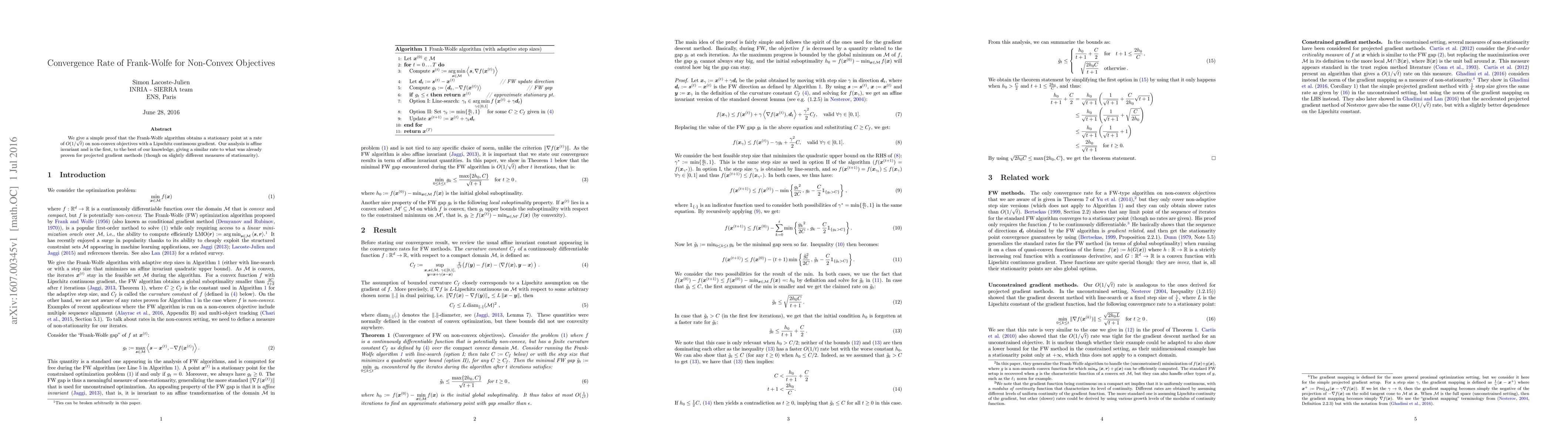 We give a simple proof that the Frank-Wolfe algorithm obtains a stationary point at a rate of $O(1/\sqrt{t})$ on non-convex objectives with a Lipschitz continuous gradient. Our analysis is affine invariant and is the first, to the best of our knowledge, giving a similar rate to what was already proven for projected gradient methods (though on slightly different measures of stationarity).