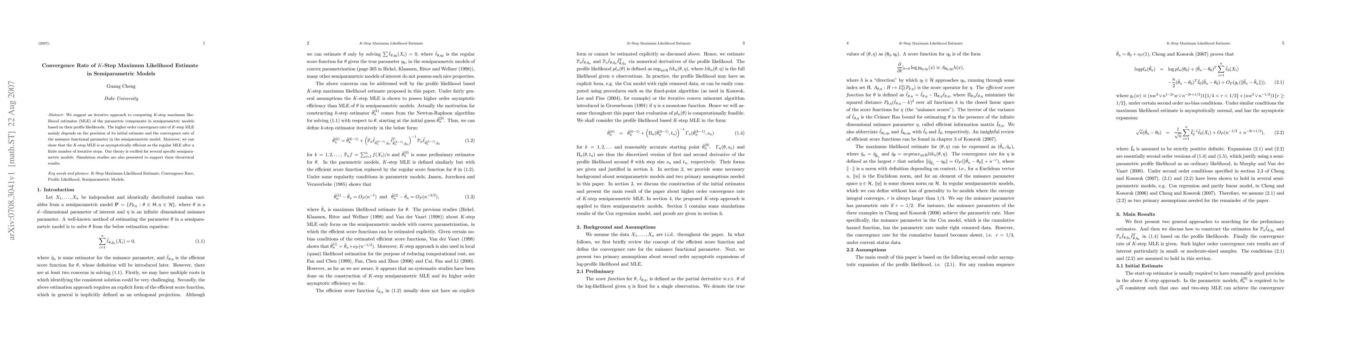 This paper explores the convergence rate of a semi-parametric maximum likelihood estimation method and shows it can achieve efficiency comparable to regular maximum likelihood after a finite number of iterations.