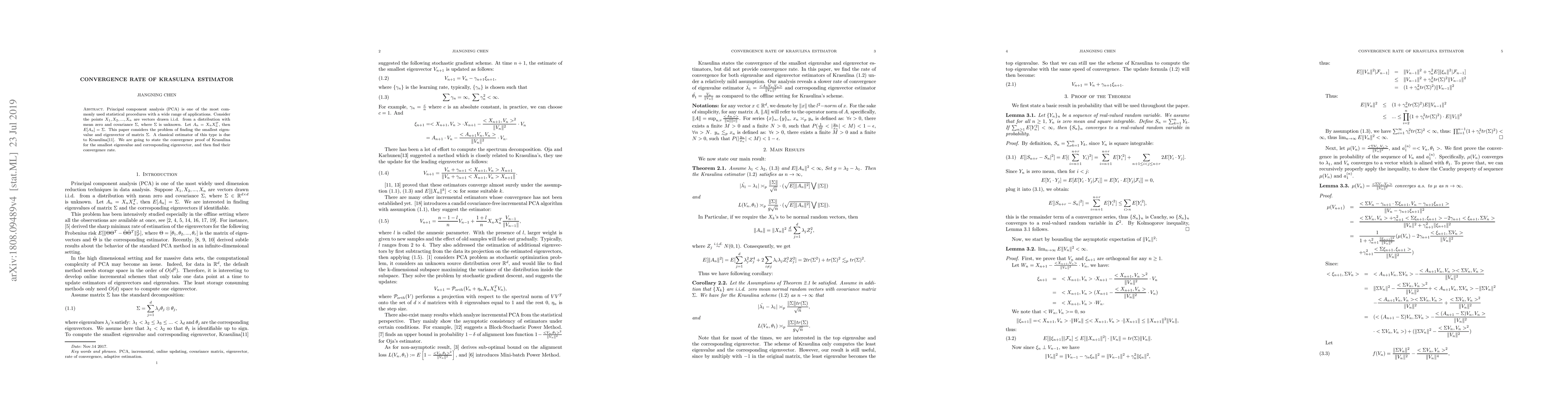 This paper investigates the convergence rate of the Krasulina estimator for finding the least eigenvalue and eigenvector of a covariance matrix in principal component analysis.