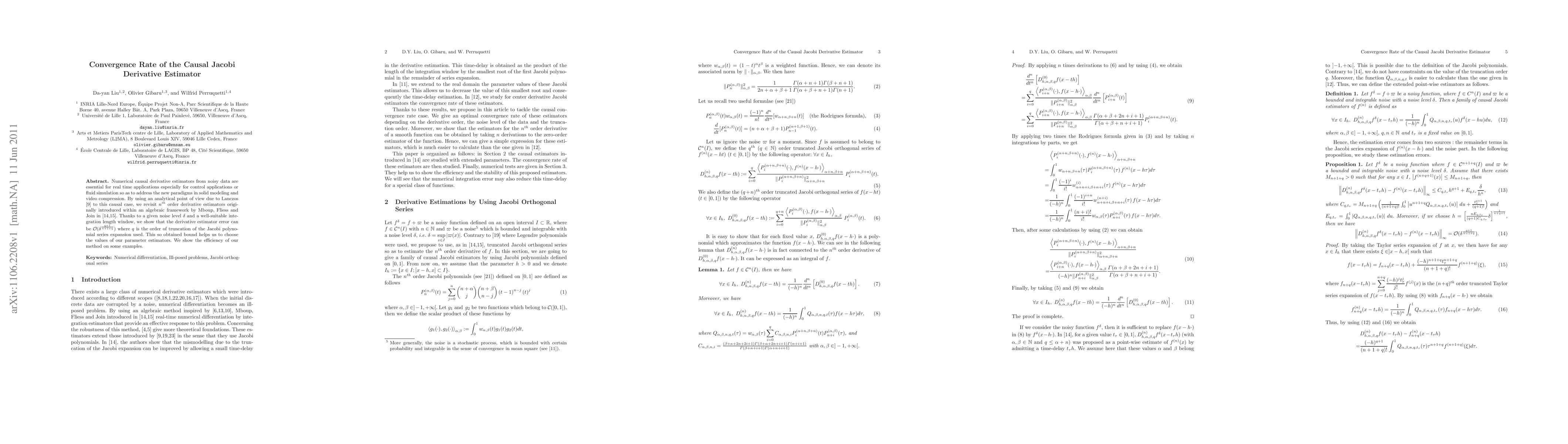 Numerical causal derivative estimators from noisy data are essential for real time applications especially for control applications or fluid simulation so as to address the new paradigms in solid modeling and video compression. By using an analytical point of view due to Lanczos \cite{C. Lanczos} to this causal case, we revisit $n^{th}$\ order derivative estimators originally introduced within an algebraic framework by Mboup, Fliess and Join in \cite{num,num0}. Thanks to a given noise level $\delta$ and a well-suitable integration length window, we show that the derivative estimator error can be $\mathcal{O}(\delta ^{\frac{q+1}{n+1+q}})$ where $q$\ is the order of truncation of the Jacobi polynomial series expansion used. This so obtained bound helps us to choose the values of our parameter estimators. We show the efficiency of our method on some examples.