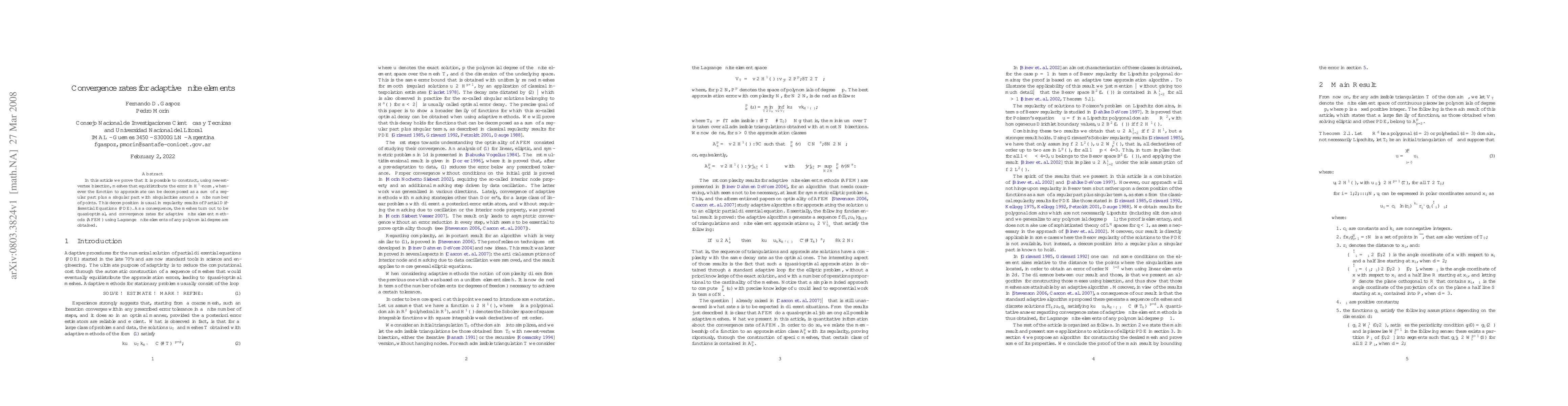 In this article we prove that it is possible to construct, using newest-vertex bisection, meshes that equidistribute the error in $H^1$-norm, whenever the function to approximate can be decomposed as a sum of a regular part plus a singular part with singularities around a finite number of points. This decomposition is usual in regularity results of Partial Differential Equations (PDE). As a consequence, the meshes turn out to be quasi-optimal, and convergence rates for adaptive finite element methods (AFEM) using Lagrange finite elements of any polynomial degree are obtained.