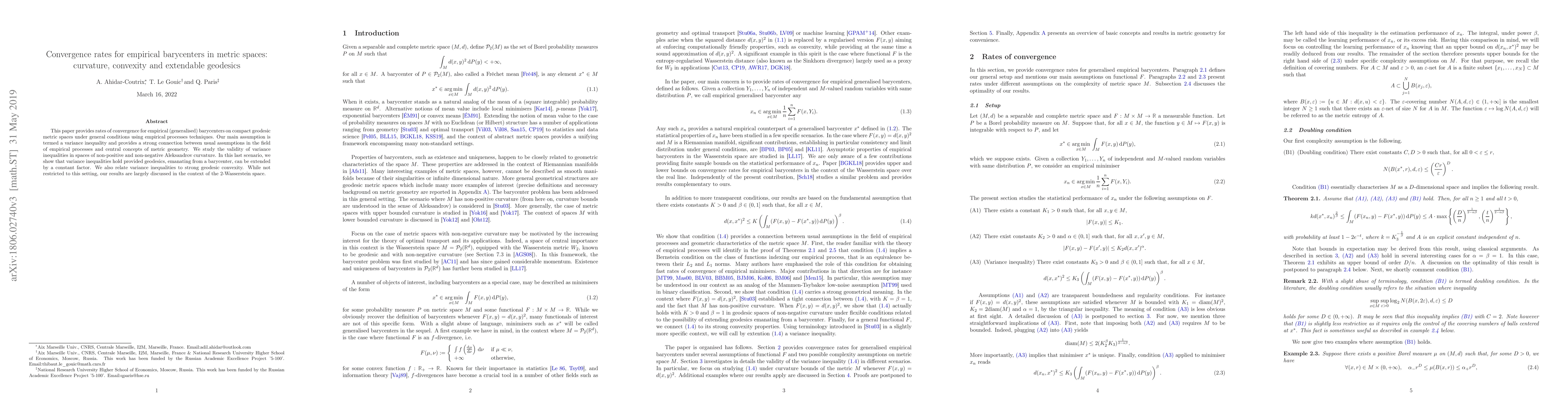This paper explores how well empirical barycenters converge in spaces with specific curvature properties, finding that variance inequalities hold under certain conditions, particularly when geodesics can be extended.