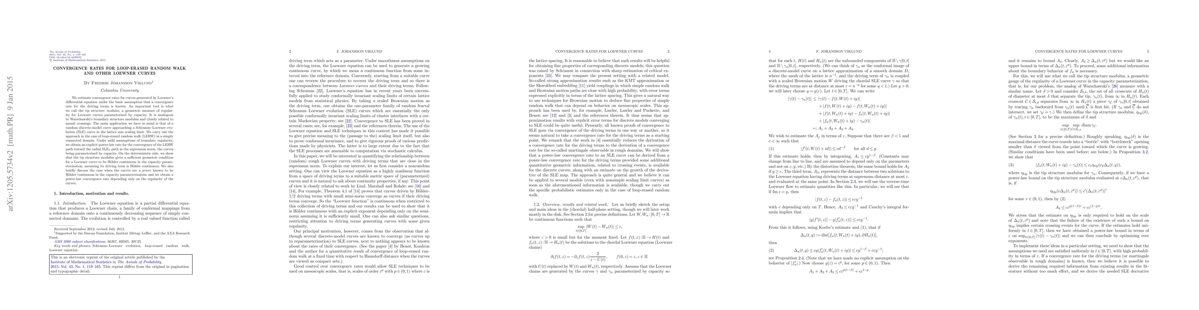 This paper estimates convergence rates for Loewner curves, particularly focusing on loop-erased random walk paths converging to radial SLE$_2$ curves, using a tip structure modulus. It provides explicit power-law rates for this convergence under boundary regularity assumptions and discusses the geometric conditions for Hölder continuity of Loewner curves.