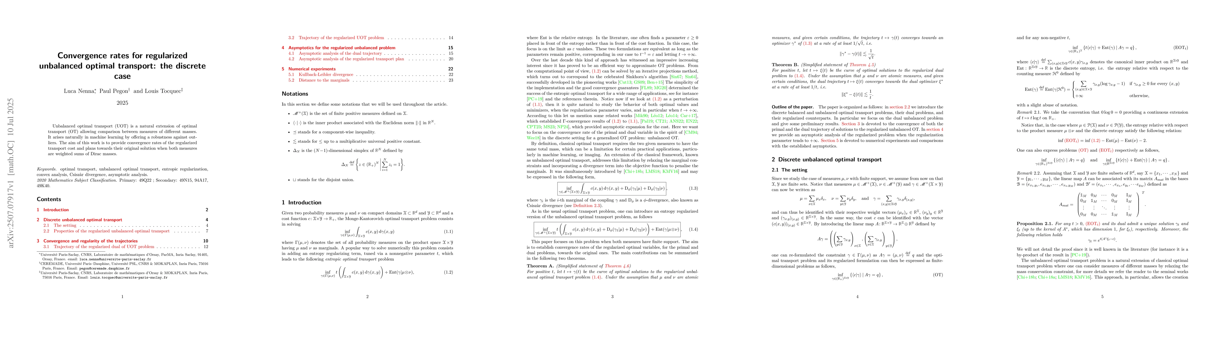 Unbalanced optimal transport (UOT) is a natural extension of optimal transport (OT) allowing comparison between measures of different masses. It arises naturally in machine learning by offering a robustness against outliers. The aim of this work is to provide convergence rates of the regularized transport cost and plans towards their original solution when both measures are weighted sums of Dirac masses.