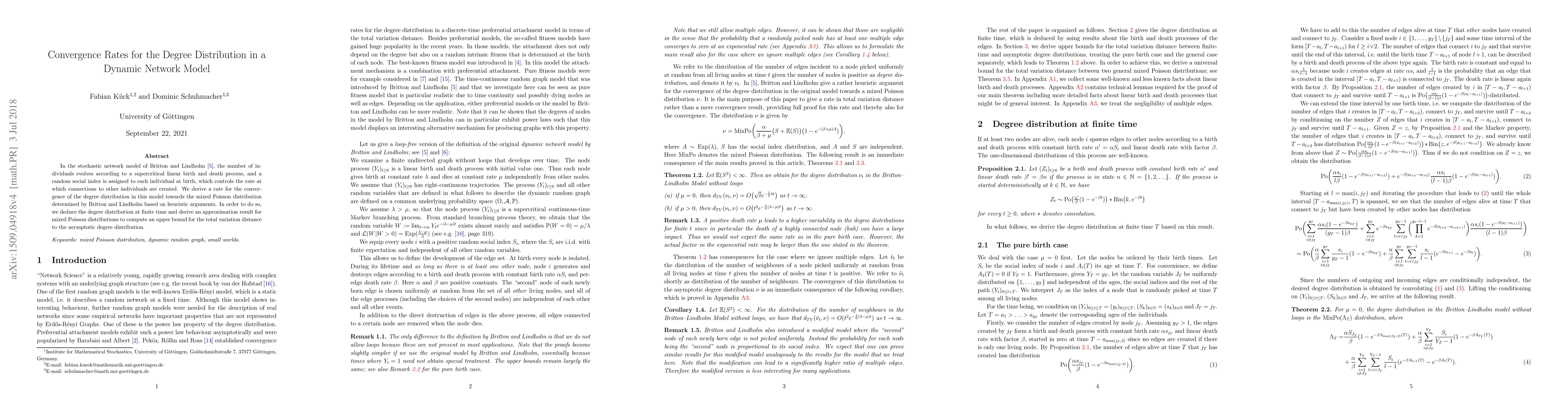 This paper investigates the convergence rate of the degree distribution in a dynamic network model, deriving an upper bound for the total variation distance to the asymptotic mixed Poisson distribution based on heuristic arguments and approximations. The model considers a supercritical linear birth and death process with a random social index influencing connection rates.