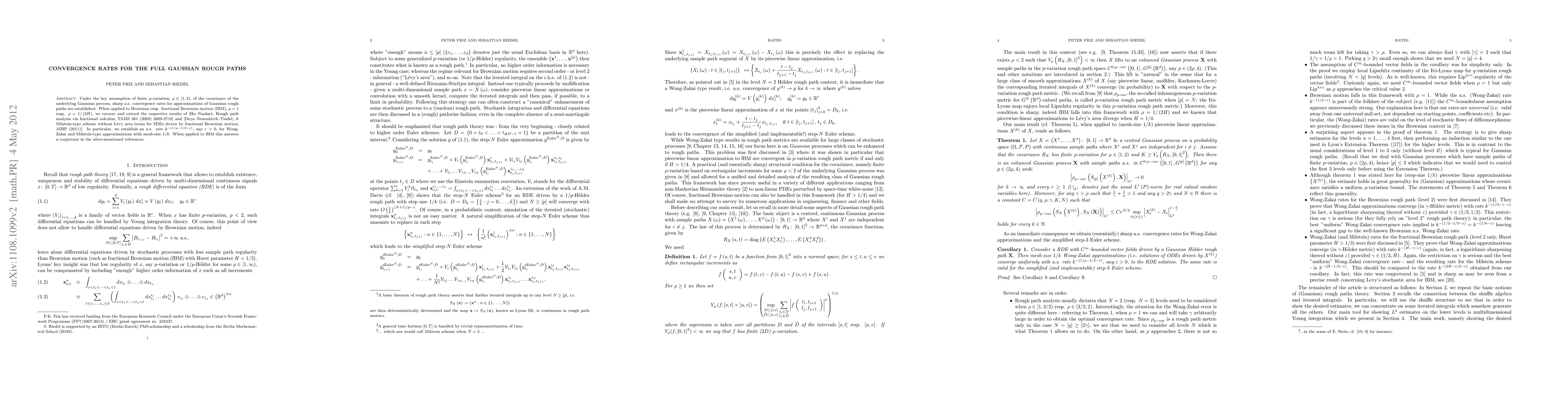 Under the key assumption of finite {\rho}-variation, {\rho}\in[1,2), of the covariance of the underlying Gaussian process, sharp a.s. convergence rates for approximations of Gaussian rough paths are established. When applied to Brownian resp. fractional Brownian motion (fBM), {\rho}=1 resp. {\rho}=1/(2H), we recover and extend the respective results of [Hu--Nualart; Rough path analysis via fractional calculus; TAMS 361 (2009) 2689-2718] and [Deya--Neuenkirch--Tindel; A Milstein-type scheme without L\'evy area terms for SDEs driven by fractional Brownian motion; AIHP (2011)]. In particular, we establish an a.s. rate k^{-(1/{\rho}-1/2-{\epsilon})}, any {\epsilon}>0, for Wong-Zakai and Milstein-type approximations with mesh-size 1/k. When applied to fBM this answers a conjecture in the afore-mentioned references.