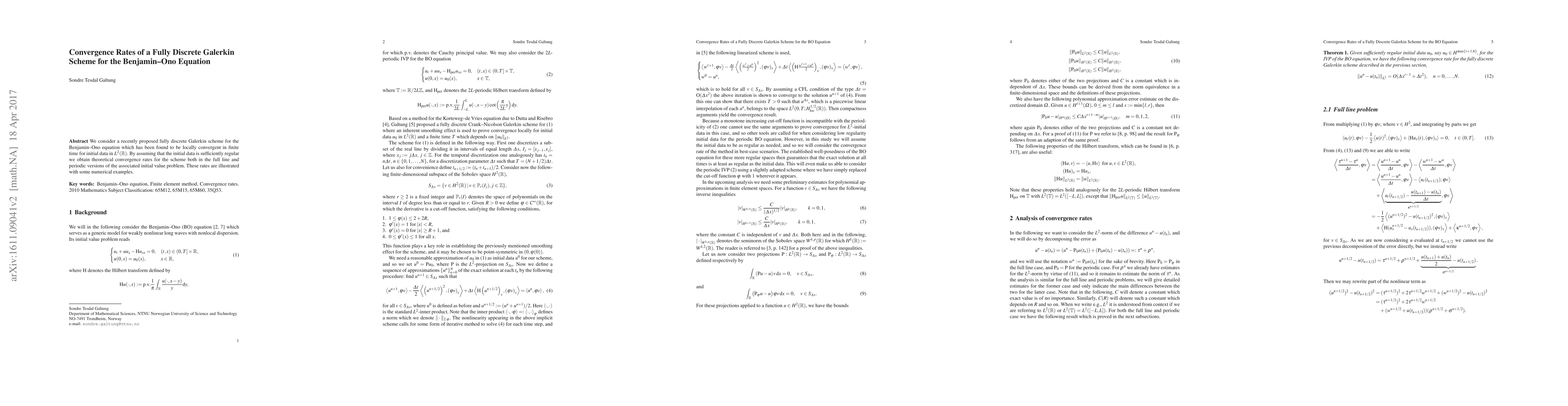 This paper investigates the convergence rates of a fully discrete Galerkin scheme for the Benjamin-Ono equation, demonstrating theoretical convergence rates under the assumption of sufficiently regular initial data, and supports findings with numerical examples.