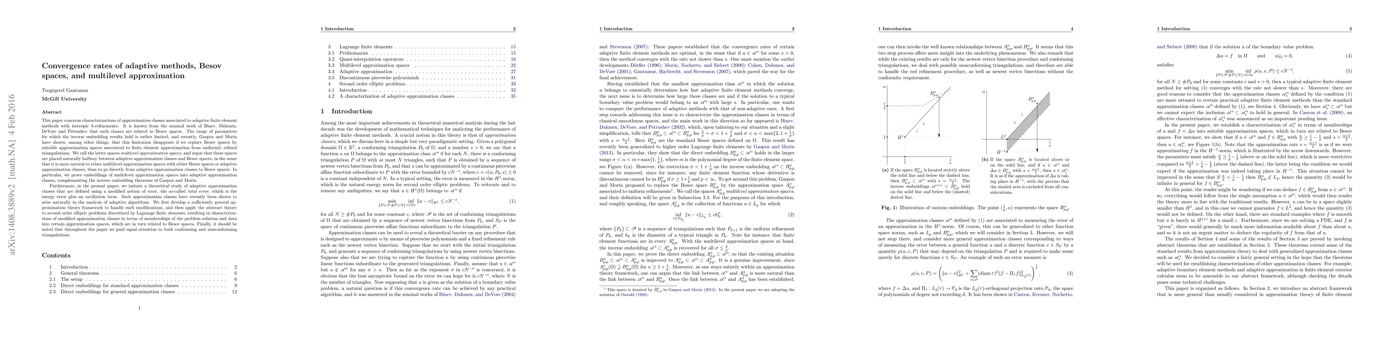 This paper explores the convergence rates of adaptive finite element methods, focusing on the relationship between adaptive approximation classes and Besov spaces, and introduces multilevel approximation spaces as a bridge. It also develops a framework for analyzing adaptive methods using a modified error notion called total error, and applies this to second-order elliptic problems to characterize these new approximation classes.