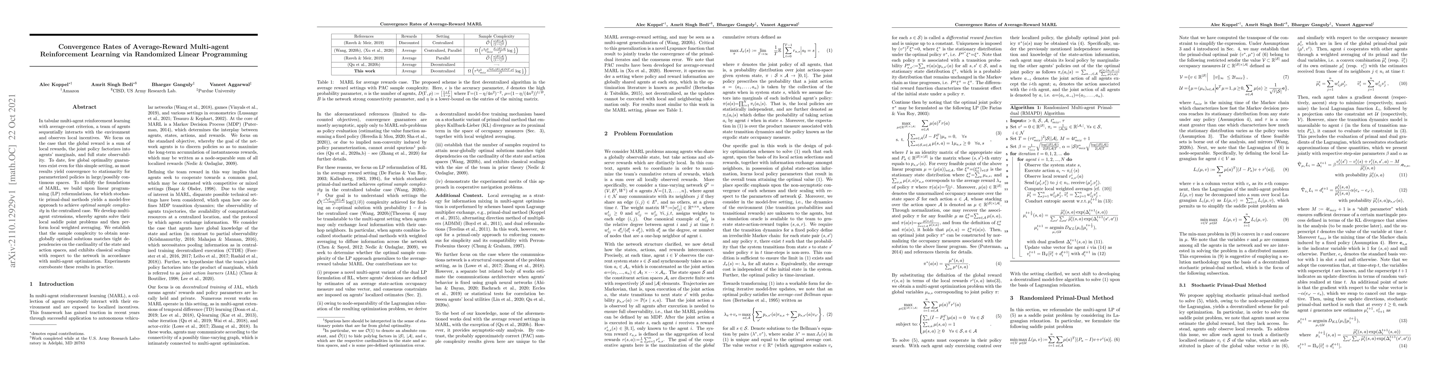 In tabular multi-agent reinforcement learning with average-cost criterion, a team of agents sequentially interacts with the environment and observes local incentives. We focus on the case that the global reward is a sum of local rewards, the joint policy factorizes into agents' marginals, and full state observability. To date, few global optimality guarantees exist even for this simple setting, as most results yield convergence to stationarity for parameterized policies in large/possibly continuous spaces. To solidify the foundations of MARL, we build upon linear programming (LP) reformulations, for which stochastic primal-dual methods yields a model-free approach to achieve \emph{optimal sample complexity} in the centralized case. We develop multi-agent extensions, whereby agents solve their local saddle point problems and then perform local weighted averaging. We establish that the sample complexity to obtain near-globally optimal solutions matches tight dependencies on the cardinality of the state and action spaces, and exhibits classical scalings with respect to the network in accordance with multi-agent optimization. Experiments corroborate these results in practice.