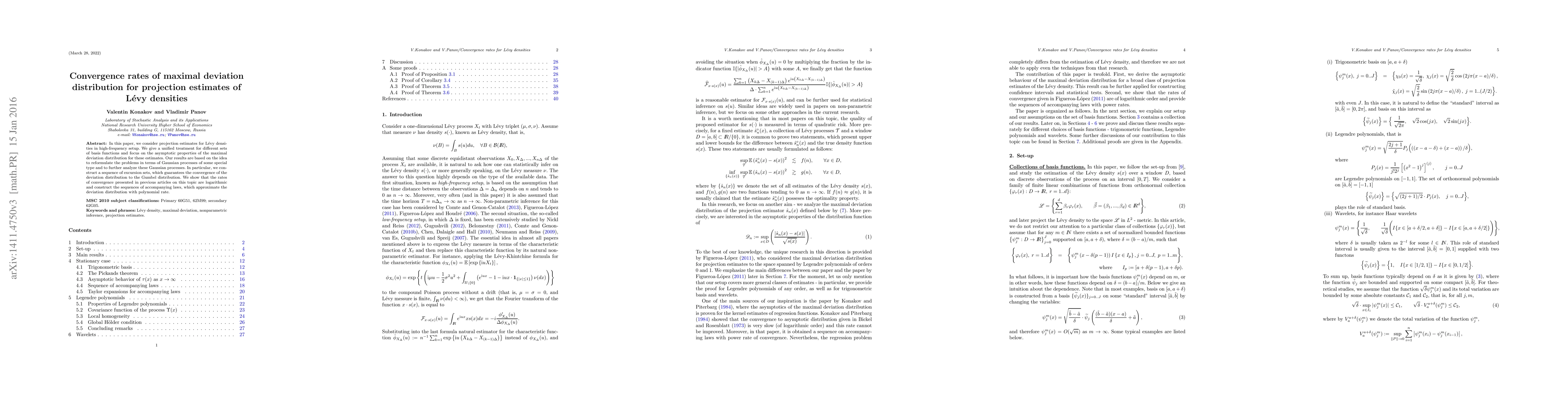 In this paper, we consider projection estimates for L\'evy densities in high-frequency setup. We give a unified treatment for different sets of basis functions and focus on the asymptotic properties of the maximal deviation distribution for these estimates. Our results are based on the idea to reformulate the problems in terms of Gaussian processes of some special type and to further analyze these Gaussian processes. In particular, we construct a sequence of excursion sets, which guarantees the convergence of the deviation distribution to the Gumbel distribution. We show that the rates of convergence presented in previous articles on this topic are logarithmic and construct the sequences of accompanying laws, which approximate the deviation distribution with polynomial rate.