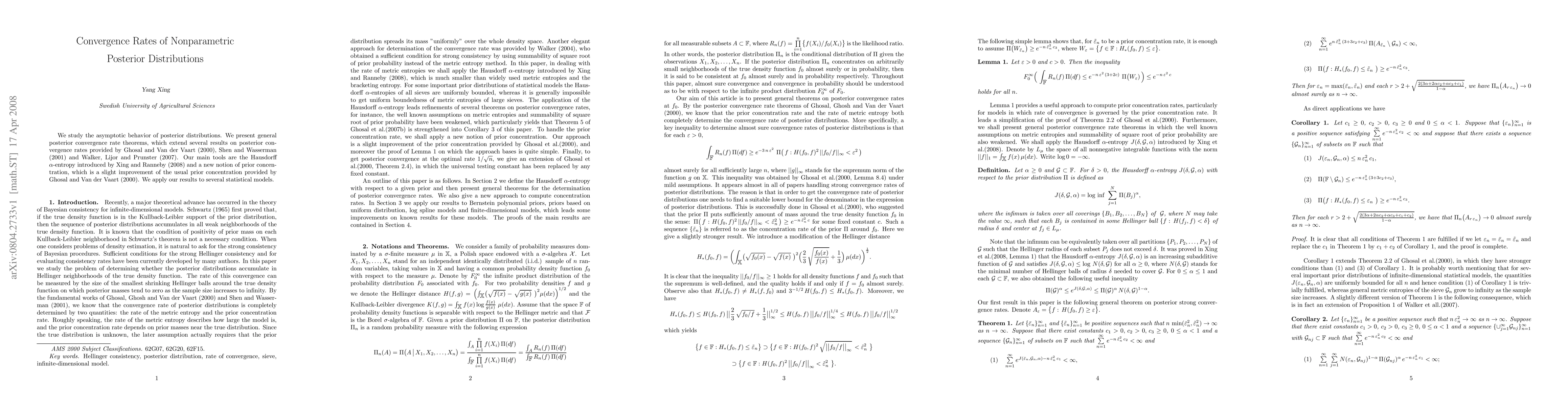 This paper extends existing theorems on the convergence rates of nonparametric posterior distributions, utilizing the Hausdorff $\alpha$-entropy and a refined notion of prior concentration. The findings apply to various statistical models, enhancing the understanding of posterior convergence behavior.
