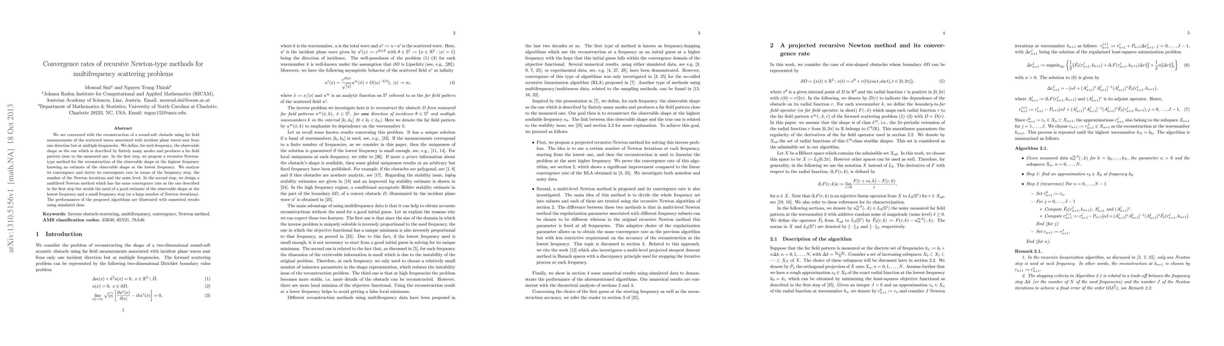 Researchers develop two Newton-type methods for reconstructing a sound-soft obstacle from far field measurements at multiple frequencies, achieving similar convergence rates with different assumptions about initial estimates.