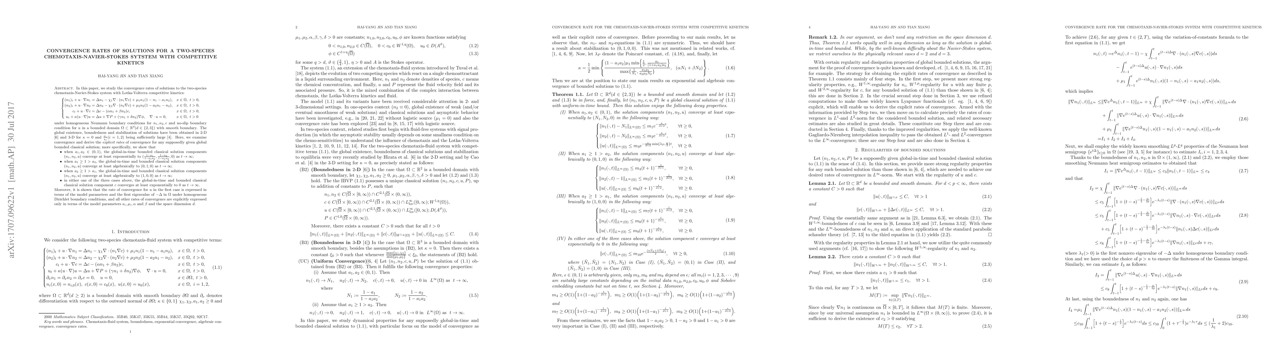 This paper investigates the convergence rates of global bounded classical solutions for a two-species chemotaxis-Navier-Stokes system with competitive kinetics, showing that most rates depend on model parameters and space dimension, except for one case where the fluid component's rate is expressed in terms of the Poincare constant and model parameters.