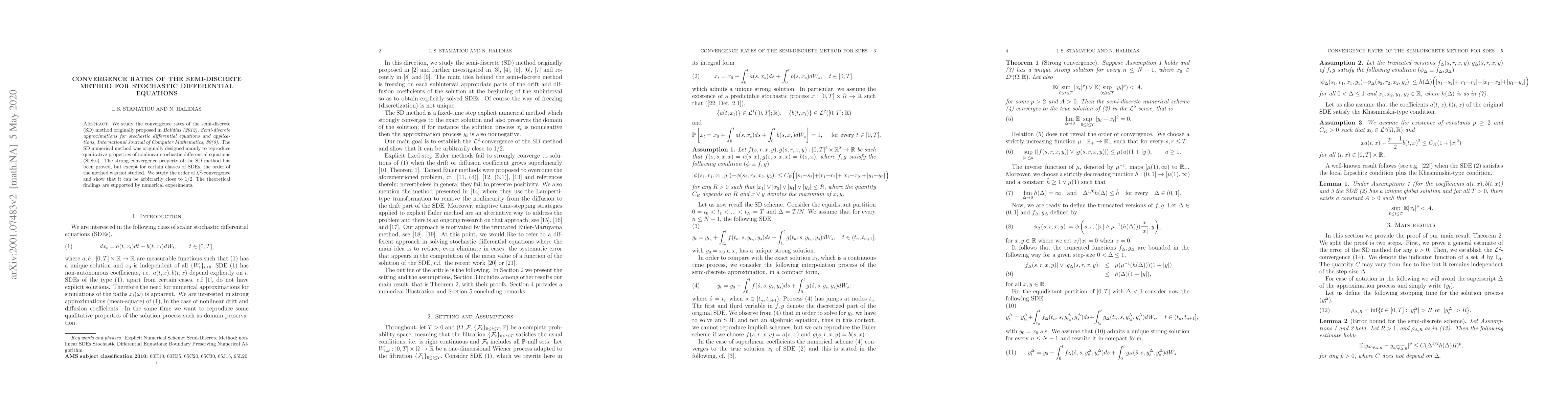 This paper investigates the convergence rates of the semi-discrete method for stochastic differential equations, demonstrating that its L2-convergence order can be arbitrarily close to 1/2. Theoretical findings are corroborated by numerical experiments.