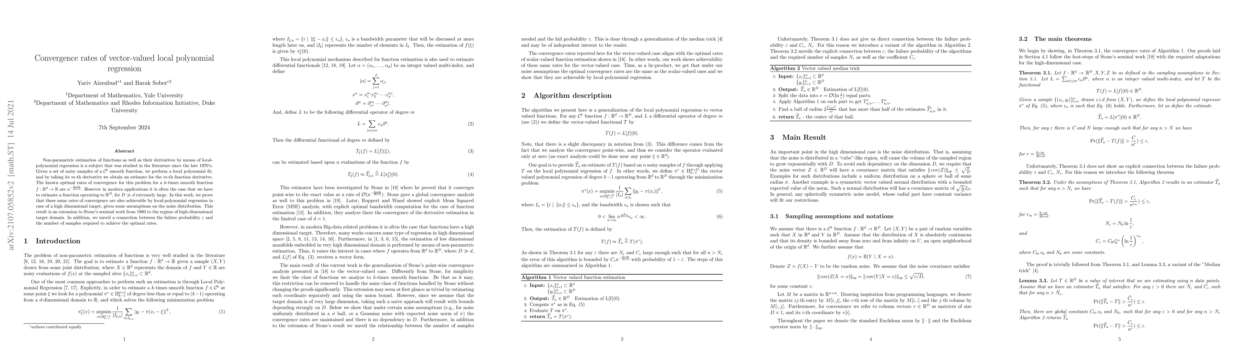 Non-parametric estimation of functions as well as their derivatives by means of local-polynomial regression is a subject that was studied in the literature since the late 1970's. Given a set of noisy samples of a $\mathcal{C}^k$ smooth function, we perform a local polynomial fit, and by taking its $m$-th derivative we obtain an estimate for the $m$-th function derivative. The known optimal rates of convergence for this problem for a $k$-times smooth function $f:\mathbb{R}^d \to \mathbb{R}$ are $n^{-\frac{k-m}{2k + d}}$. However in modern applications it is often the case that we have to estimate a function operating to $\mathbb{R}^D$, for $D \gg d$ extremely large. In this work, we prove that these same rates of convergence are also achievable by local-polynomial regression in case of a high dimensional target, given some assumptions on the noise distribution. This result is an extension to Stone's seminal work from 1980 to the regime of high-dimensional target domain. In addition, we unveil a connection between the failure probability $\varepsilon$ and the number of samples required to achieve the optimal rates.
