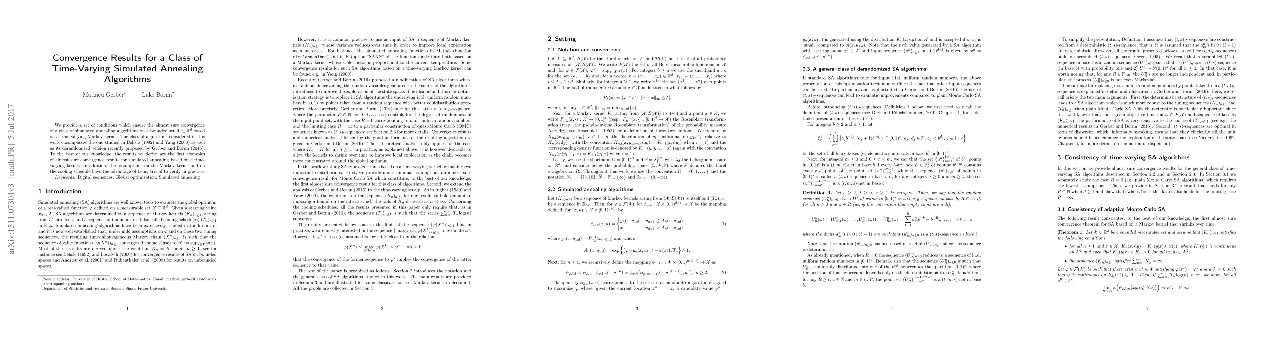This paper proves that a class of simulated annealing algorithms converge almost surely to an optimal solution on a bounded set, under specific conditions related to the time-varying Markov kernel and cooling schedule. The results provide new insights into the convergence properties of this optimization method.