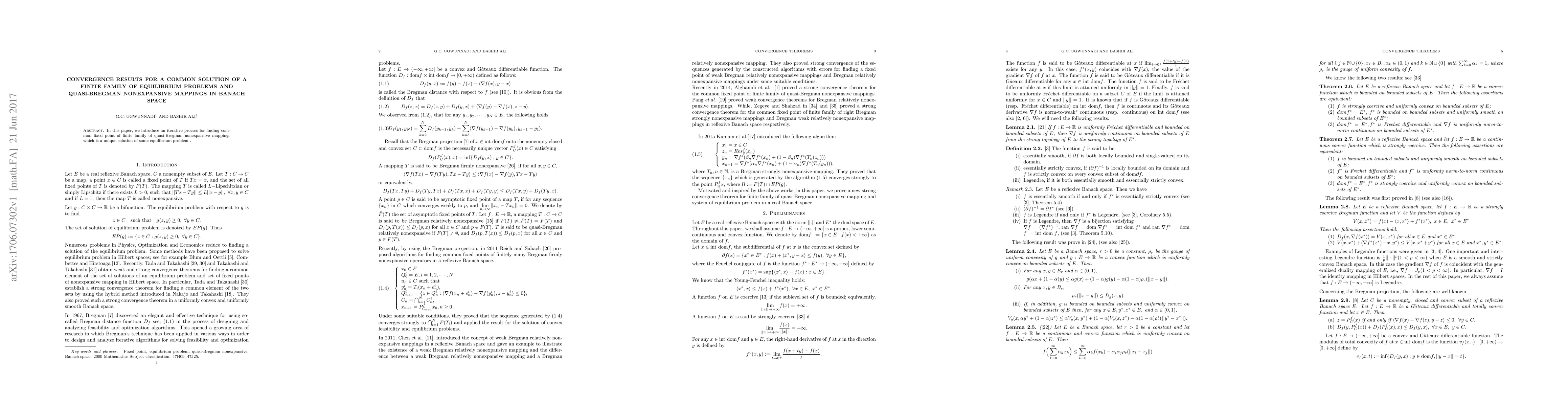Summary: This paper presents an iterative method to locate the common fixed point of a finite set of quasi-Bregman nonexpansive mappings, which corresponds to the unique solution of an associated equilibrium problem in Banach space. Convergence results are established for this iterative process.