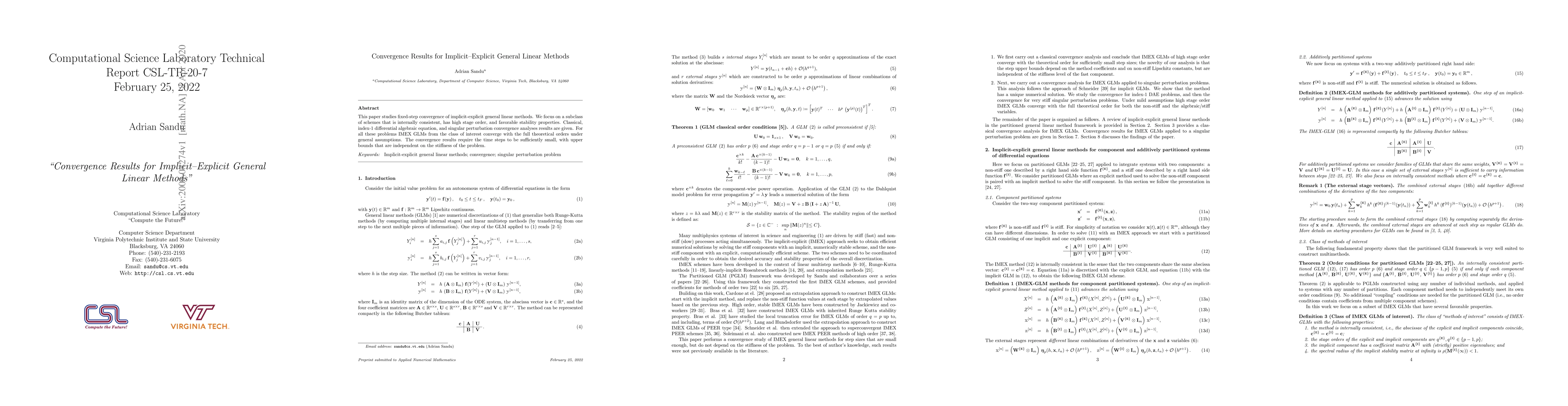 This paper investigates the fixed-step convergence of implicit-explicit general linear methods (IMEX GLMs) for solving differential equations, demonstrating that a subclass of these methods achieves full theoretical order convergence under general conditions, with convergence bounds independent of problem stiffness.