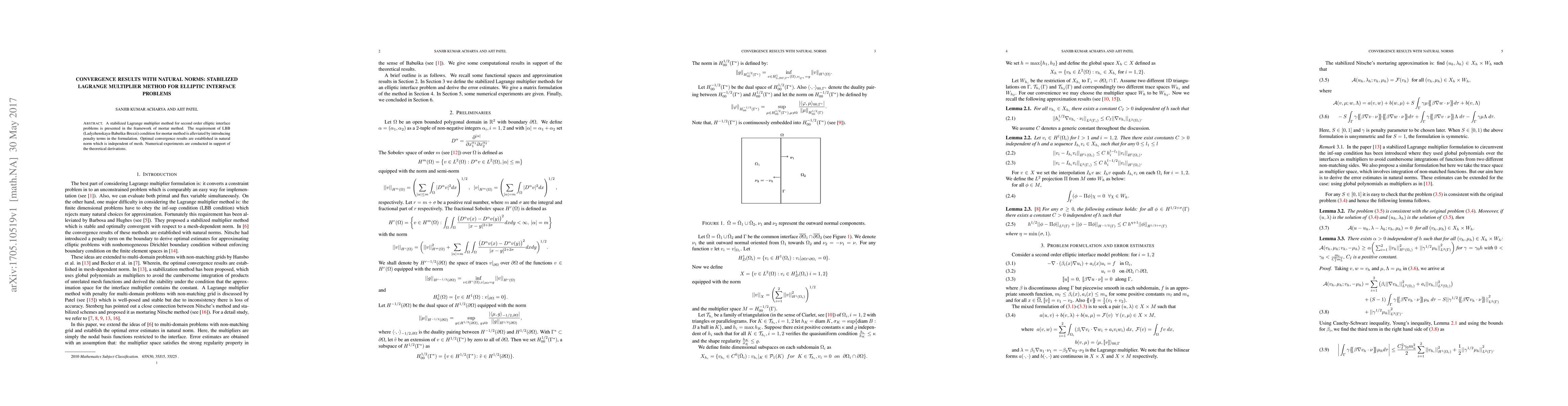 This paper presents a stabilized Lagrange multiplier method for solving second-order elliptic interface problems using a mortar method framework, alleviating the LBB condition through penalty terms. Optimal convergence results are established in a mesh-independent natural norm, supported by numerical experiments.
