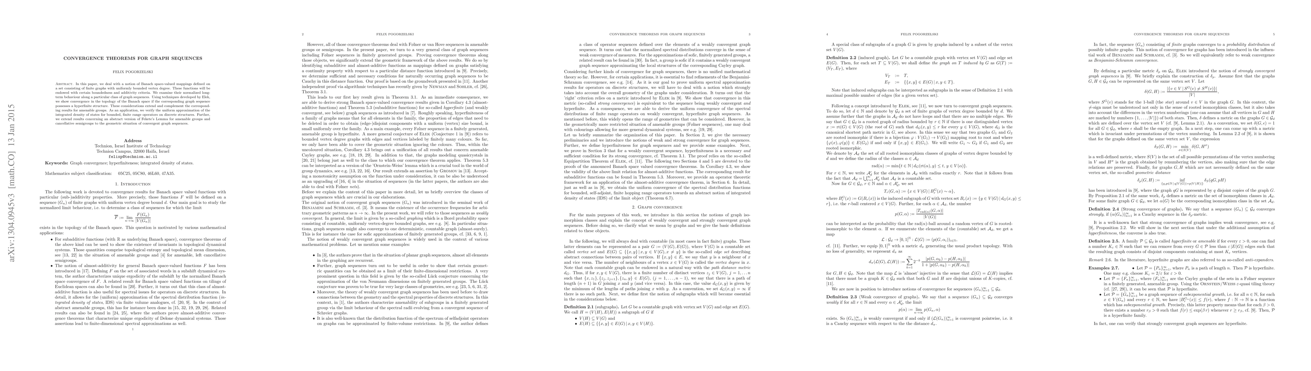 In this paper, we deal with a notion of Banach space-valued mappings defined on a set consisting of finite graphs with uniformly bounded vertex degree. These functions will be endowed with certain boundedness and additivity criteria. We examine their normalized long-term behaviour along a particular class of graph sequences. Using techniques developed by Elek, we show convergence in the topology of the Banach space if the corresponding graph sequence possesses a hyperfinite structure. These considerations extend and complement the corresponding results for amenable groups. As an application, we verify the uniform approximation of the integrated density of states for bounded, finite range operators on discrete structures. Further, we extend results concerning an abstract version of Fekete's Lemma for amenable groups and cancellative semigroups to the geometric situation of convergent graph sequences.