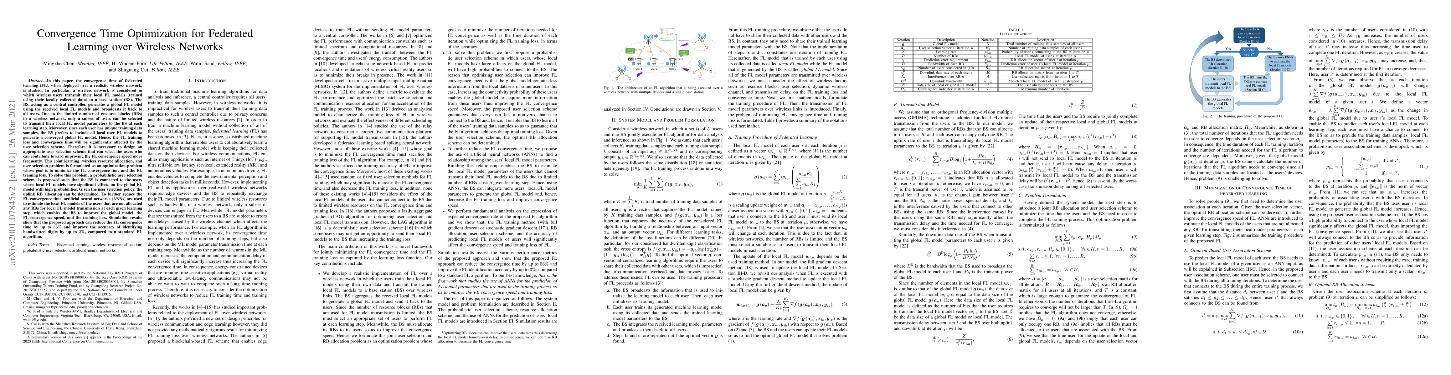 This paper studies the convergence time optimization of federated learning (FL) over wireless networks, focusing on user selection and resource allocation strategies to minimize convergence time while enhancing FL performance. A probabilistic user selection scheme and artificial neural networks (ANNs) are proposed to improve the global FL model and accelerate convergence.