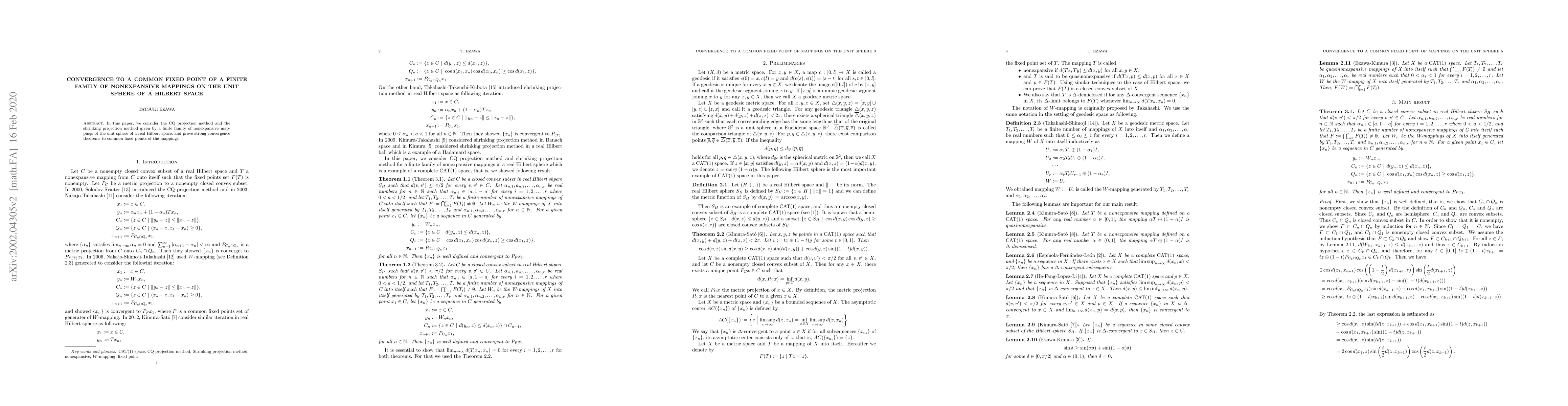 In this paper, we consider the CQ projection method and the shrinking projection method given by a finite family of nonexpansive mappings of the unit sphere of a real Hilbert space, and prove strong convergence theorems to common fixed points of the mappings.