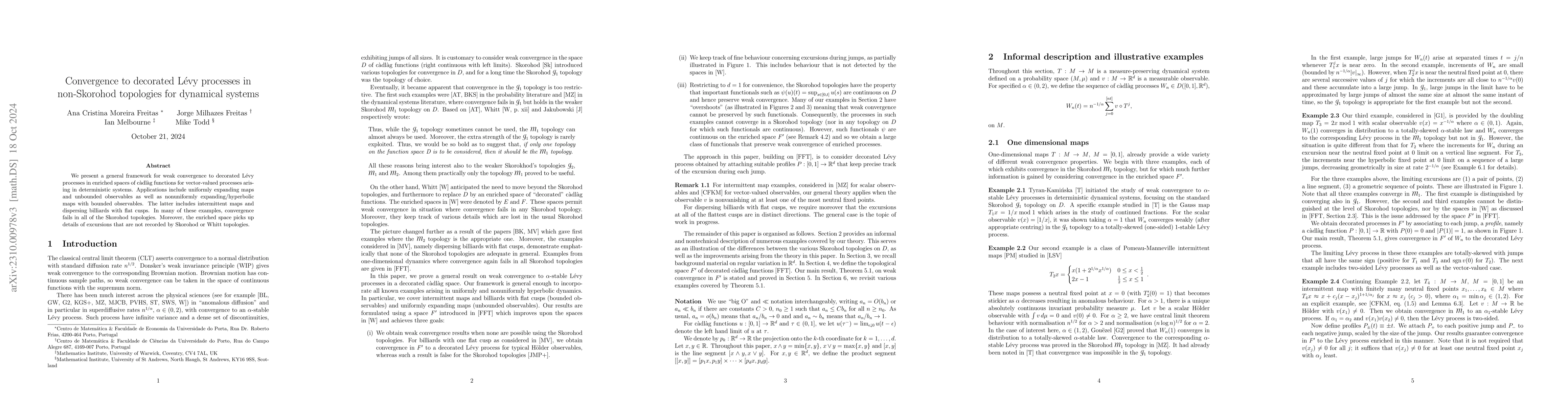 This paper develops a framework for weak convergence to decorated Lévy processes in enriched spaces of càdlàg functions for vector-valued processes in deterministic systems, including applications to uniformly expanding maps and hyperbolic maps. Unlike traditional Skorohod topologies, this approach captures details of excursions not recorded in standard topologies.