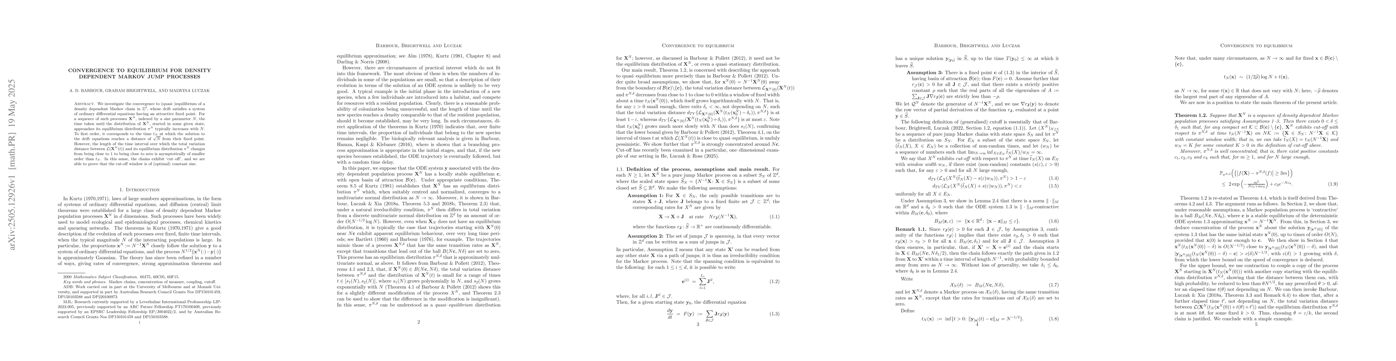 The paper provides a rigorous analysis of the convergence to equilibrium for density-dependent Markov jump processes, proving the existence of a constant-size cut-off window for the total variation distance.