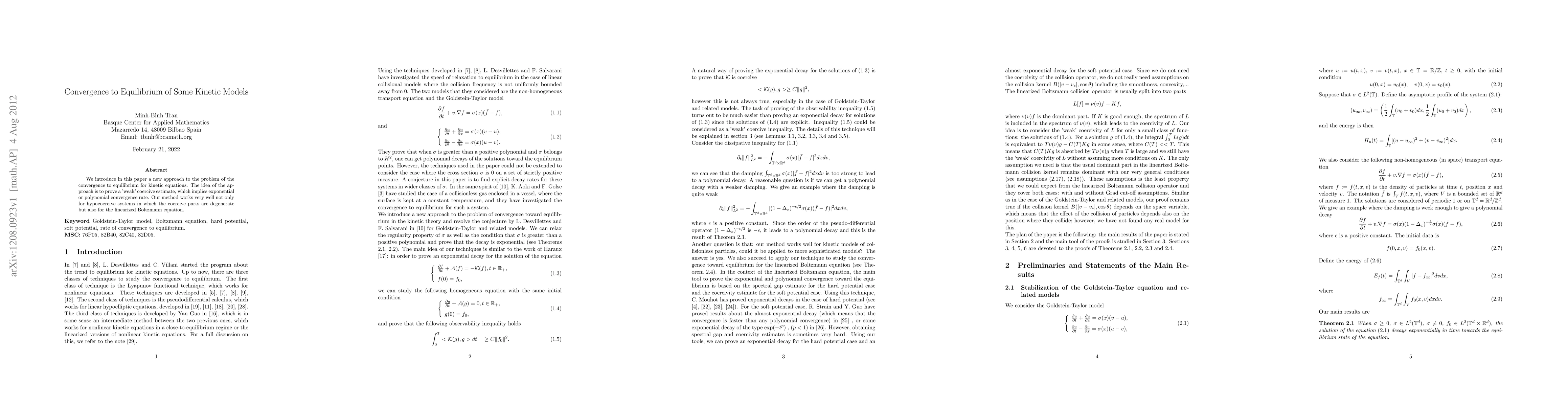 This paper introduces a new approach to proving convergence to equilibrium in kinetic equations, showing it works for hypocoercive systems and the linearized Boltzmann equation with exponential or polynomial convergence rates.
