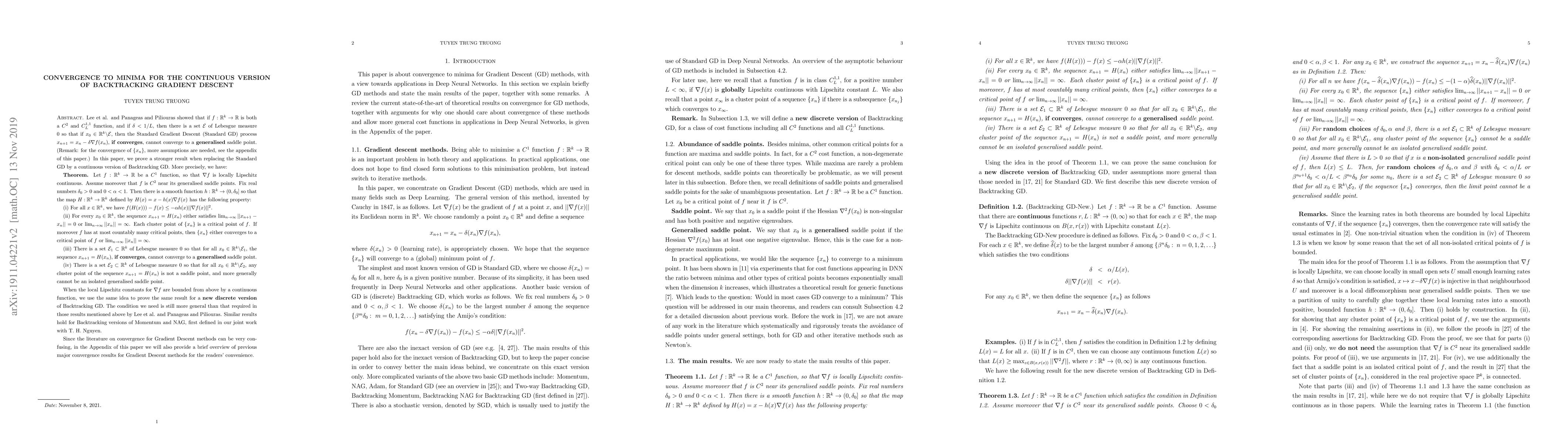 The main result of this paper is: {\bf Theorem.} Let $f:\mathbb{R}^k\rightarrow \mathbb{R}$ be a $C^{1}$ function, so that $\nabla f$ is locally Lipschitz continuous. Assume moreover that $f$ is $C^2$ near its generalised saddle points. Fix real numbers $\delta_0>0$ and $0<\alpha <1$. Then there is a smooth function $h:\mathbb{R}^k\rightarrow (0,\delta_0]$ so that the map $H:\mathbb{R}^k\rightarrow \mathbb{R}^k$ defined by $H(x)=x-h(x)\nabla f(x)$ has the following property: (i) For all $x\in \mathbb{R}^k$, we have $f(H(x)))-f(x)\leq -\alpha h(x)||\nabla f(x)||^2$. (ii) For every $x_0\in \mathbb{R}^k$, the sequence $x_{n+1}=H(x_n)$ either satisfies $\lim_{n\rightarrow\infty}||x_{n+1}-x_n||=0$ or $ \lim_{n\rightarrow\infty}||x_n||=\infty$. Each cluster point of $\{x_n\}$ is a critical point of $f$. If moreover $f$ has at most countably many critical points, then $\{x_n\}$ either converges to a critical point of $f$ or $\lim_{n\rightarrow\infty}||x_n||=\infty$. (iii) There is a set $\mathcal{E}_1\subset \mathbb{R}^k$ of Lebesgue measure $0$ so that for all $x_0\in \mathbb{R}^k\backslash \mathcal{E}_1$, the sequence $x_{n+1}=H(x_n)$, {\bf if converges}, cannot converge to a {\bf generalised} saddle point. (iv) There is a set $\mathcal{E}_2\subset \mathbb{R}^k$ of Lebesgue measure $0$ so that for all $x_0\in \mathbb{R}^k\backslash \mathcal{E}_2$, any cluster point of the sequence $x_{n+1}=H(x_n)$ is not a saddle point, and more generally cannot be an isolated generalised saddle point. Some other results are proven.
