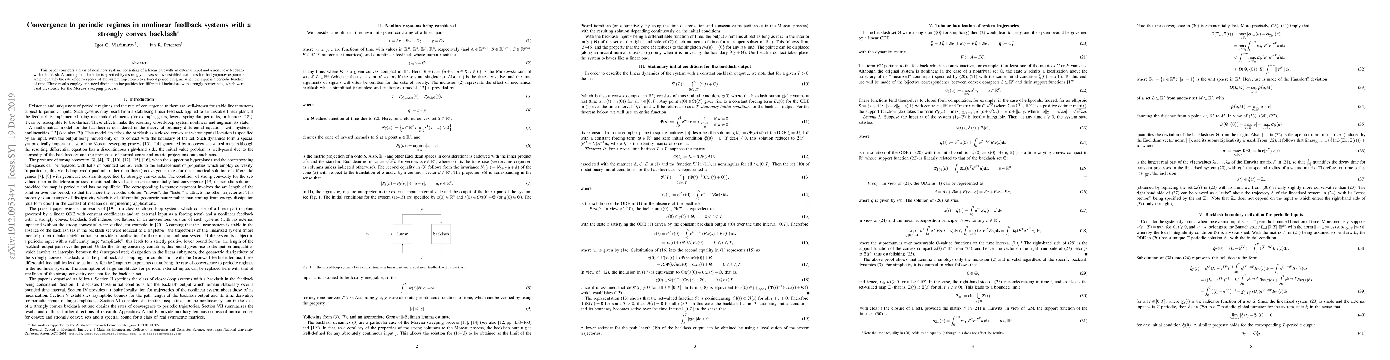 This paper considers a class of nonlinear systems consisting of a linear part with an external input and a nonlinear feedback with a backlash. Assuming that the latter is specified by a strongly convex set, we establish estimates for the Lyapunov exponents which quantify the rate of convergence of the system trajectories to a forced periodic regime when the input is a periodic function of time. These results employ enhanced dissipation inequalities for differential inclusions with strongly convex sets, which were used previously for the Moreau sweeping process.