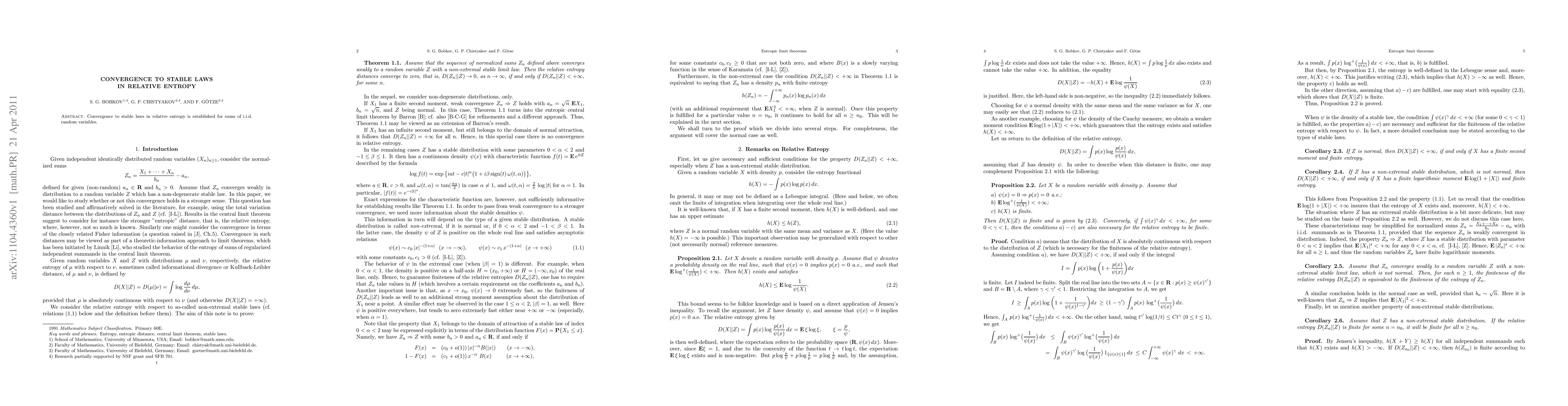 Convergence to stable laws in relative entropy is established for sums of i.i.d. random variables.