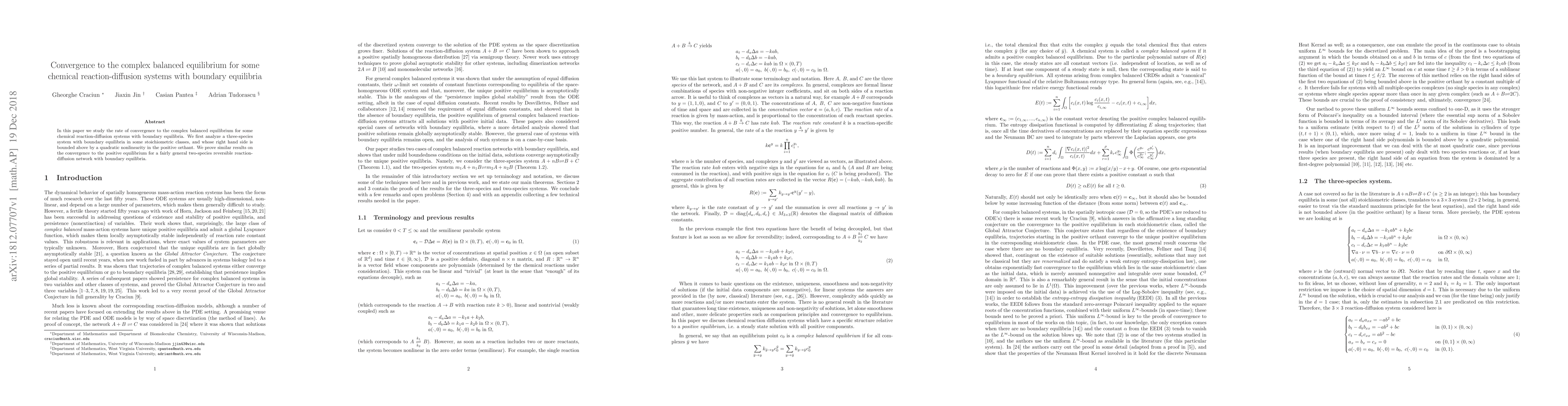 This paper investigates the convergence rate to complex balanced equilibrium in chemical reaction-diffusion systems with boundary equilibria, focusing on a three-species system and a general two-species reversible network, demonstrating convergence under specific nonlinear conditions.