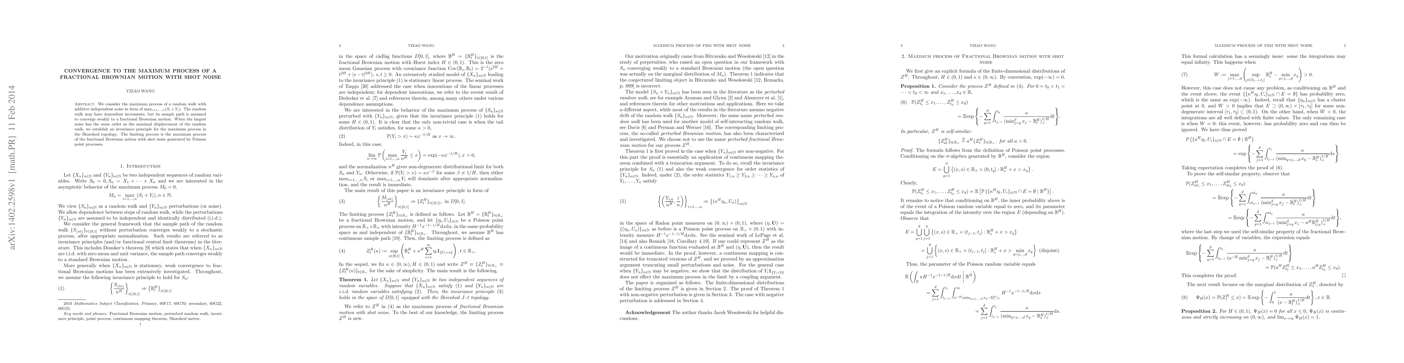 We consider the maximum process of a random walk with additive independent noise in form of $\max_{i=1,\dots,n}(S_i+Y_i)$. The random walk may have dependent increments, but its sample path is assumed to converge weakly to a fractional Brownian motion. When the largest noise has the same order as the maximal displacement of the random walk, we establish an invariance principle for the maximum process in the Skorohod topology. The limiting process is the maximum process of the fractional Brownian notion with shot noise generated by Poisson point processes.