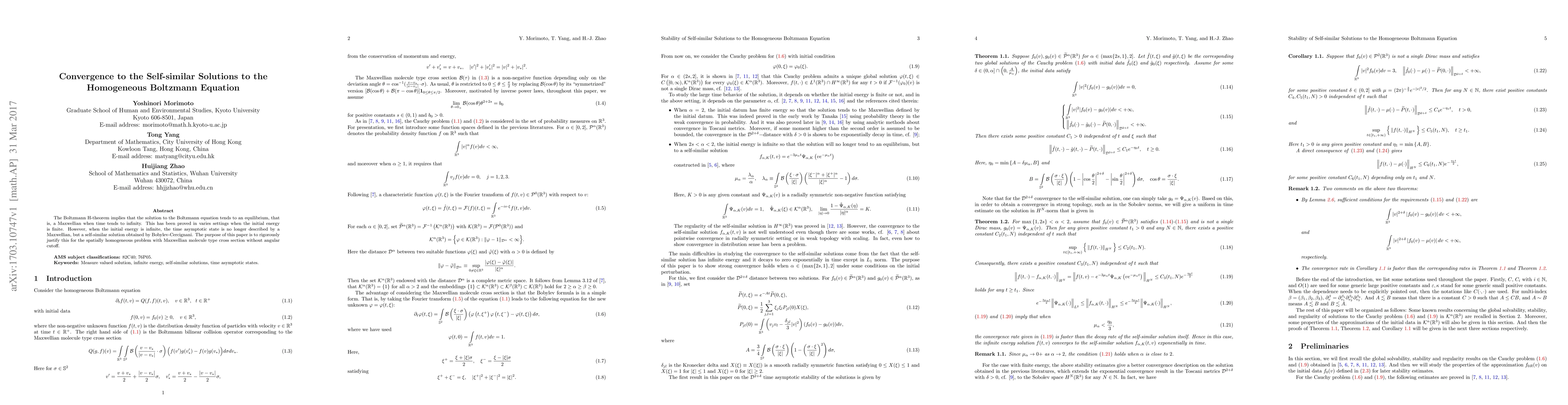 This paper rigorously justifies the convergence of solutions to the homogeneous Boltzmann equation towards self-similar solutions, rather than Maxwellians, when the initial energy is infinite, as opposed to the traditional H-theorem behavior. This convergence is demonstrated for the spatially homogeneous case with Maxwellian cross sections and no angular cutoff.
