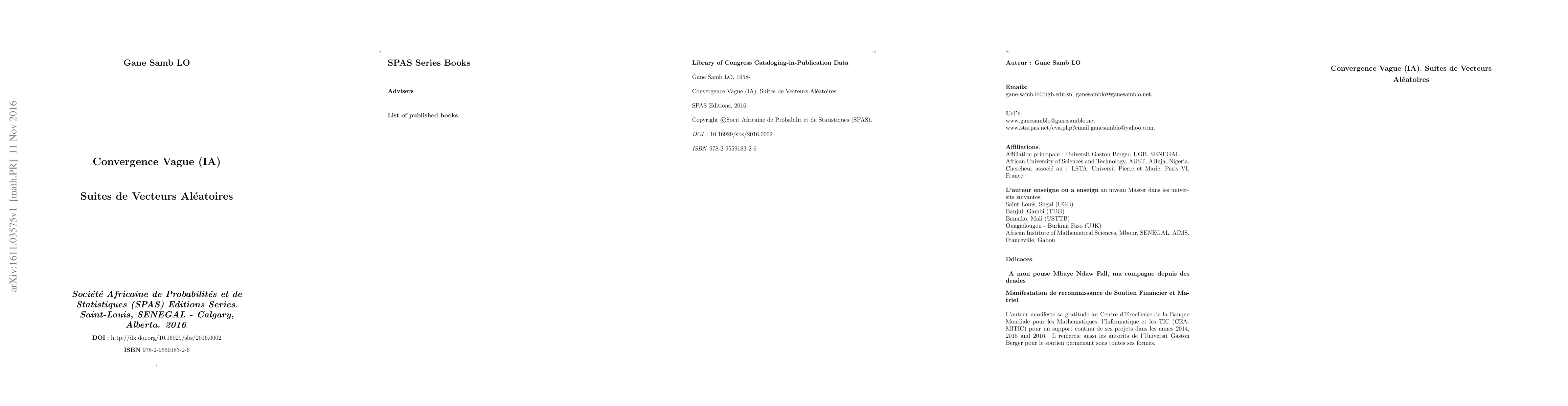 This monograph aims at presenting the core weak convergence theory for sequences of random vectors with values in $\mathbb{R}^k$. In some places, a more general formulation in metric spaces is provided. It lays out the necessary foundation that paves the way to applications in particular subfields of the theory. In particular, the needs of Asymptotic Statistics are addressed. A whole chapter is devoted to weak convergence in $\mathbb{R}$ where specific tools, for example for handling weak convergence of sequences using independent and indentically distributed random variables such that the Renyi's representations by means of standard uniform or exponential random variables, are stated. The function empirical process is presented as a powerful tool for solving a considerable number of asymptotic problems in Statistics. The text is written in a self-contained approach whith the proofs of all used results at the exception of the general Skorohod-Wichura Theorem