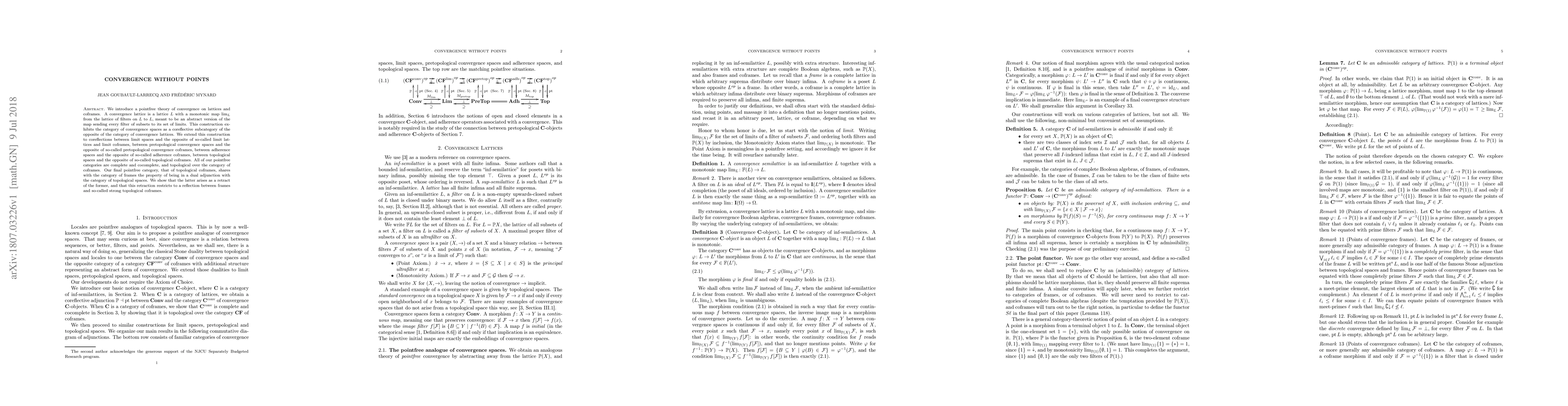 This paper introduces a pointfree theory of convergence on lattices and coframes, establishing convergence lattices and their categorical relationships. It demonstrates how various pointfree categories, including topological coframes, are complete and cocomplete, and relates them to their topological counterparts.