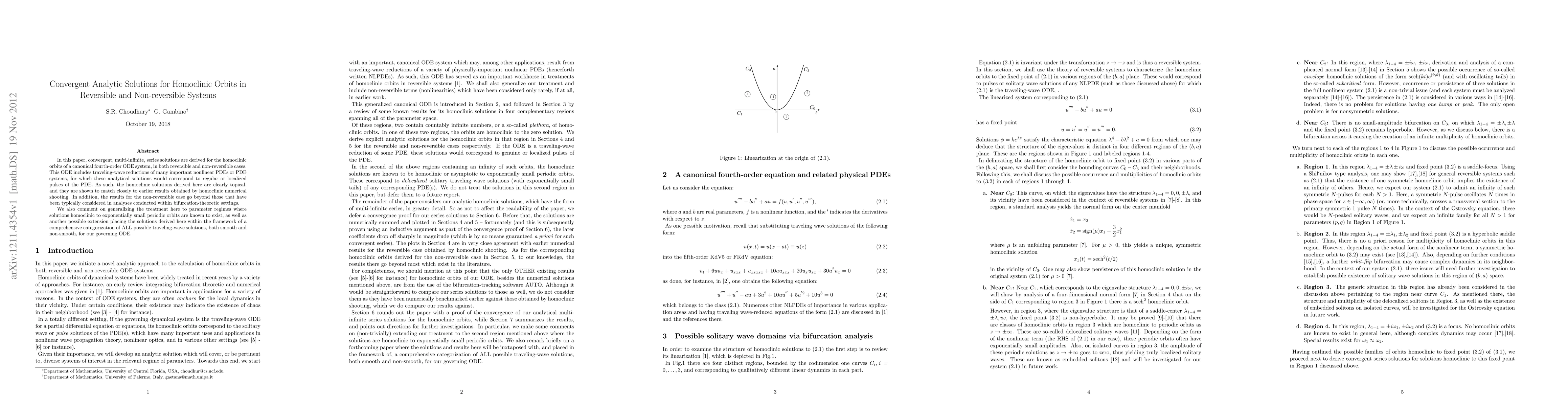 This paper develops convergent analytic series solutions for homoclinic orbits in a canonical fourth-order ODE system applicable to nonlinear PDEs, providing insights into regular or localized pulses. The solutions cover both reversible and non-reversible cases, extending beyond typical bifurcation-theoretic analyses.