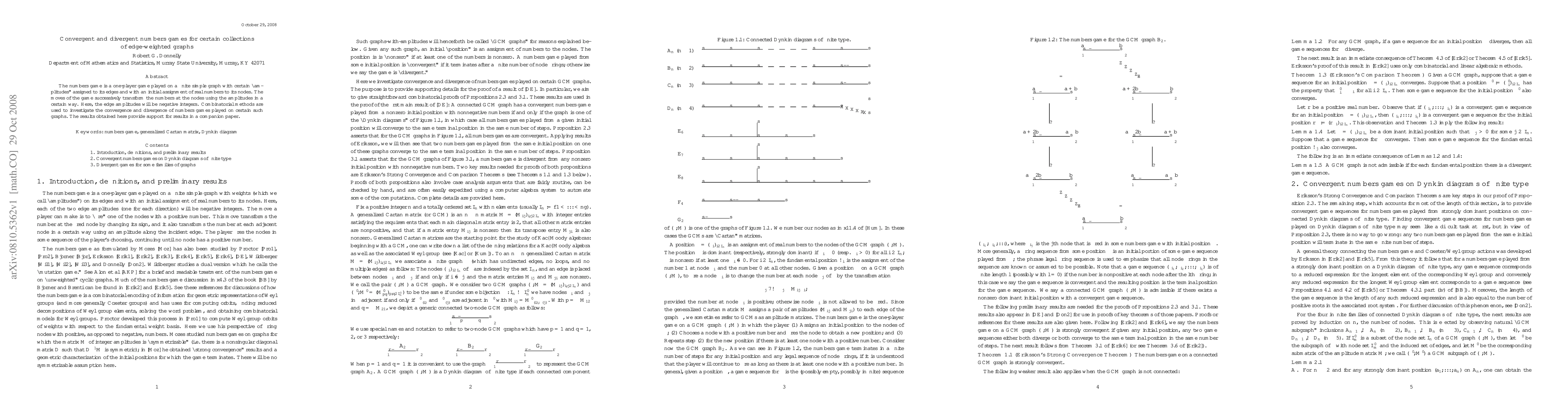 The numbers game is a one-player game played on a finite simple graph with certain "amplitudes" assigned to its edges and with an initial assignment of real numbers to its nodes. The moves of the game successively transform the numbers at the nodes using the amplitudes in a certain way. Here, the edge amplitudes will be negative integers. Combinatorial methods are used to investigate the convergence and divergence of numbers games played on certain such graphs. The results obtained here provide support for results in a companion paper.