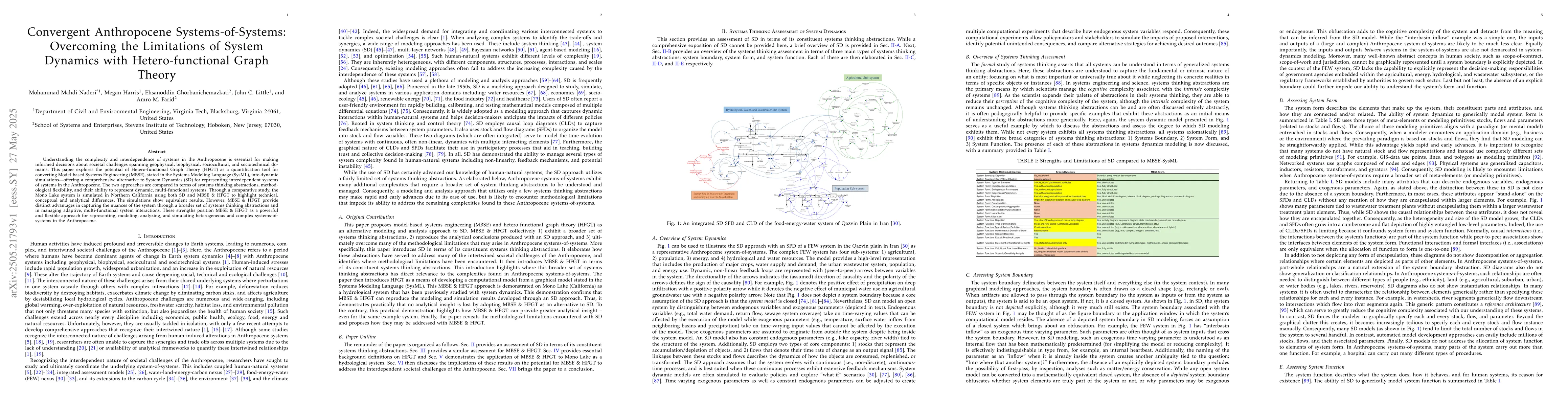 This paper explores Hetero-functional Graph Theory as a tool to simulate complex systems-of-systems in the Anthropocene, offering advantages over System Dynamics in capturing nuances of multi-functional system interactions.