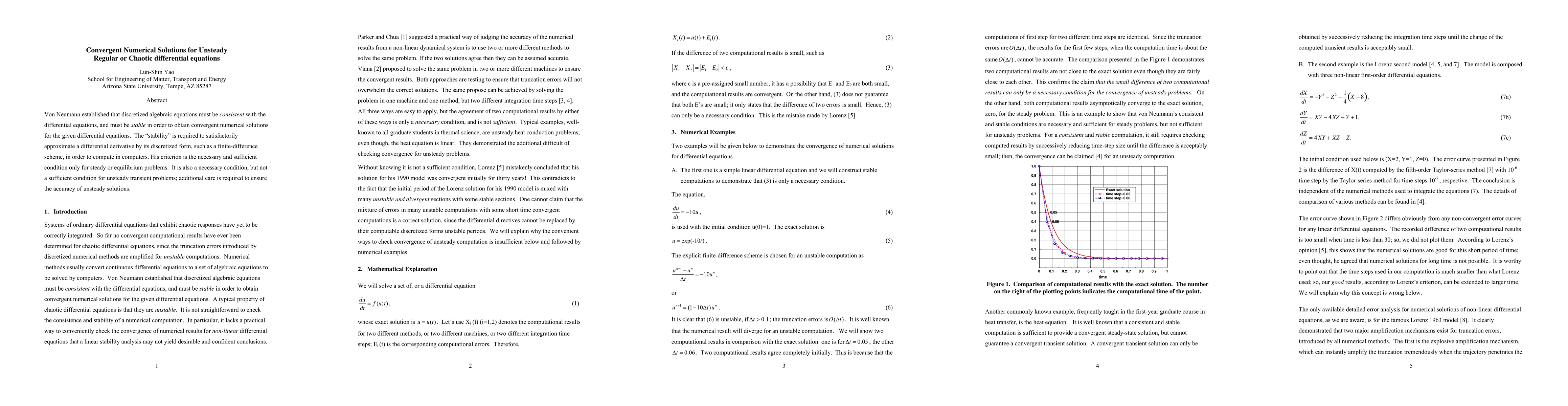 Von Neumann established that discretized algebraic equations must be consistent with the differential equations, and must be stable in order to obtain convergent numerical solutions for the given differential equations. The "stability" is required to satisfactorily approximate a differential derivative by its discretized form, such as a finite-difference scheme, in order to compute in computers. His criterion is the necessary and sufficient condition only for steady or equilibrium problems. It is also a necessary condition, but not a sufficient condition for unsteady transient problems; additional care is required to ensure the accuracy of unsteady solutions.